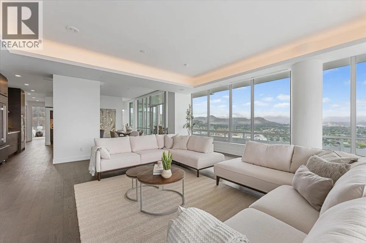 Live in luxury. This over 2600+ sq. ft. sub-penthouse is situated within the prestigious ONE Water Street, a premier condo development in the heart of downtown Kelowna’s vibrant waterfront community. From the 27th floor of the West Tower enjoy panoramic vistas of Okanagan Lake and the City of Kelowna. Every turn of this 3 bed and 2.5 bath home is