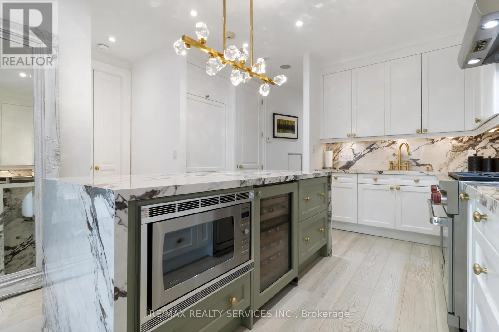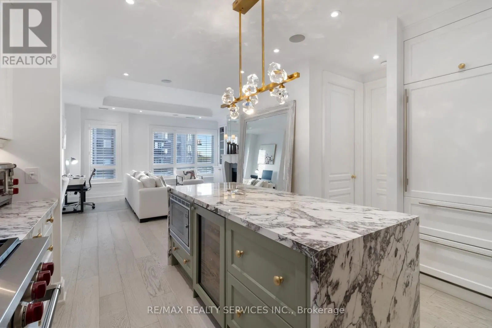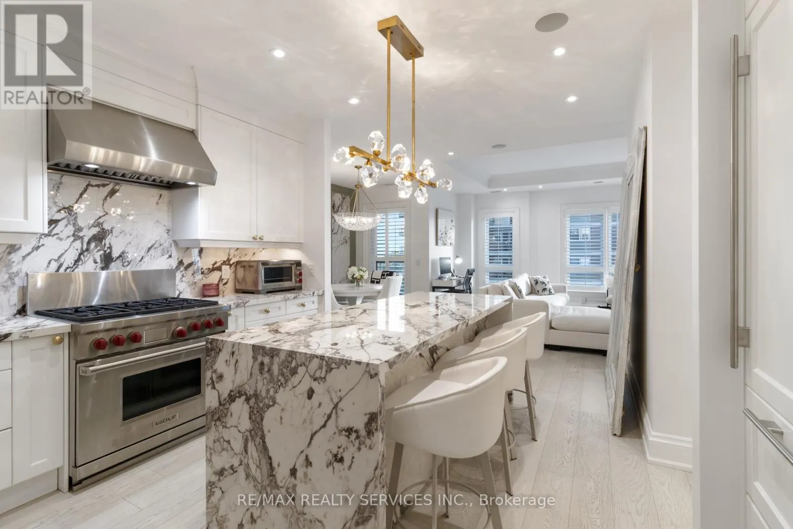 Breathtaking Lower Penthouse with 2 side-by-side parking spaces equipped with EV charging & oversized locker. Custom upgrades throughout with soaring ceilings & open layout. Downsview kitchen with Wolf/Sub-Zero appliances. Primary suite offers walk-in closet & spa-like ensuite with heated floors. Private den with custom Murphy bed, currently used as 2nd bedroom. Spacious dining area opens to balcony with stunning water