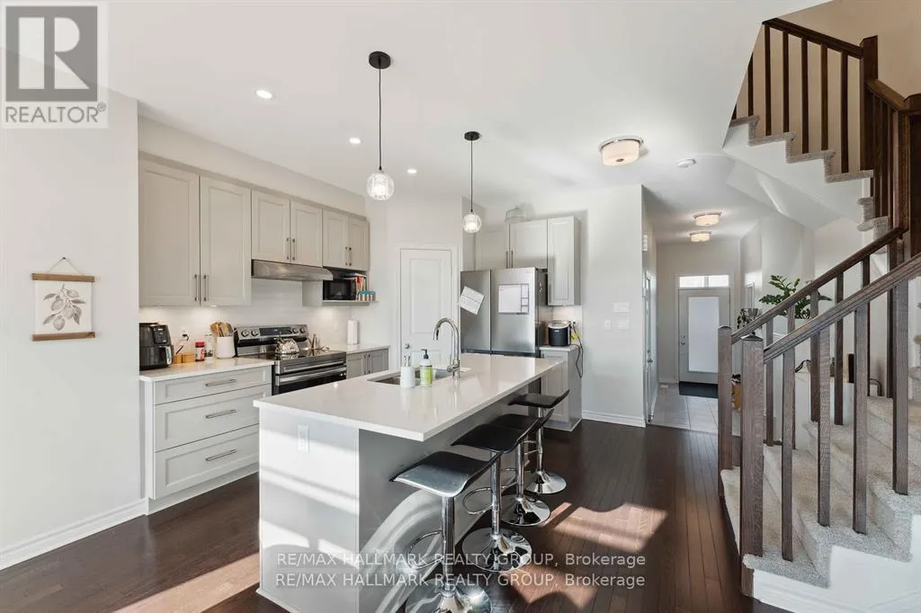 Available Feb 20. Bright and modern executive townhome in the desirable Westwood community of Stittsville. The open-concept main floor features large windows, hardwood flooring, a gas fireplace, and a contemporary kitchen with Quartz countertops and a breakfast bar. Upstairs includes three spacious bedrooms, each with a walk-in closet, a full bathroom, and a convenient laundry room. The finished basement offers