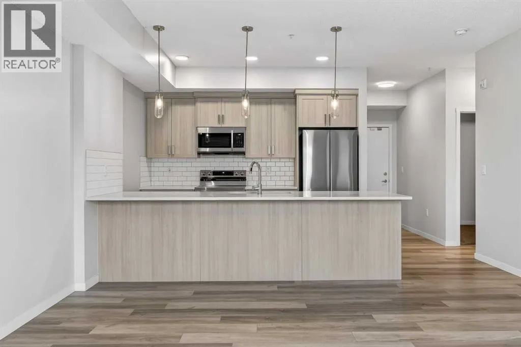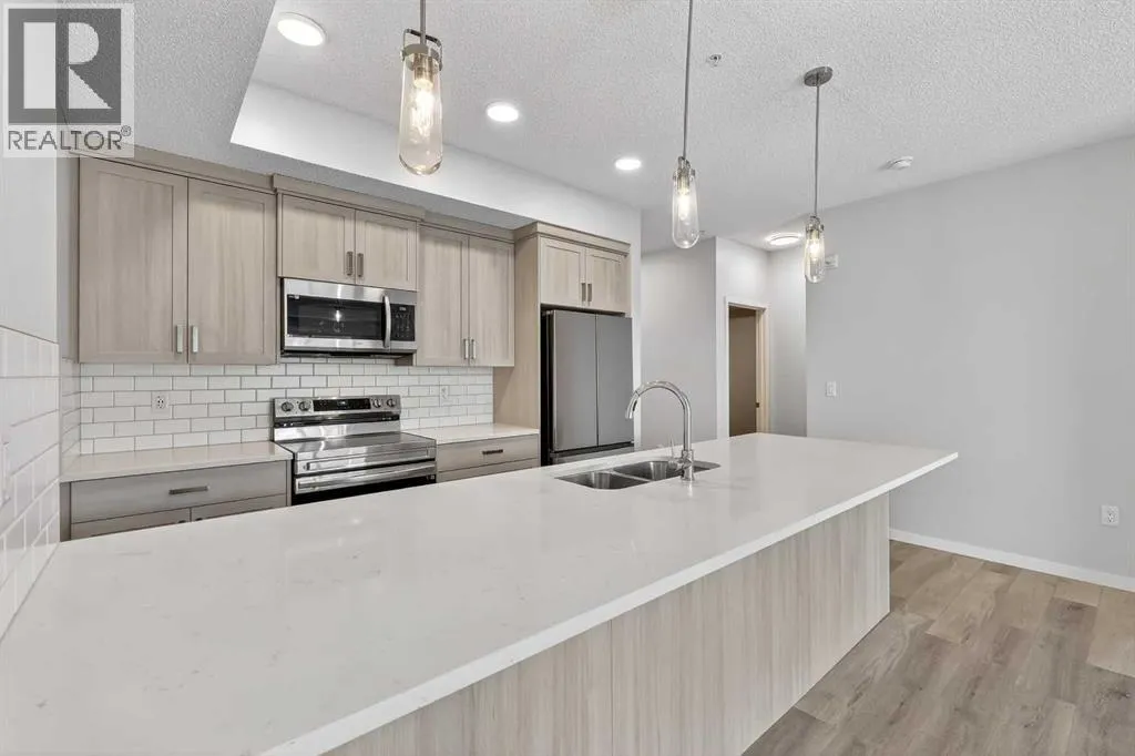 Welcome to this modern fourth-floor condo in the growing community of Carrington, built by Cedarglen in 2024. This bright and thoughtfully designed 2 bedroom, 2 bathroom unit offers approximately 780 sqft of well-used living space, ideal for first-time buyers, downsizers, or anyone looking for a low-maintenance lifestyle in a newer building. The open-concept layout features a stylish kitchen with