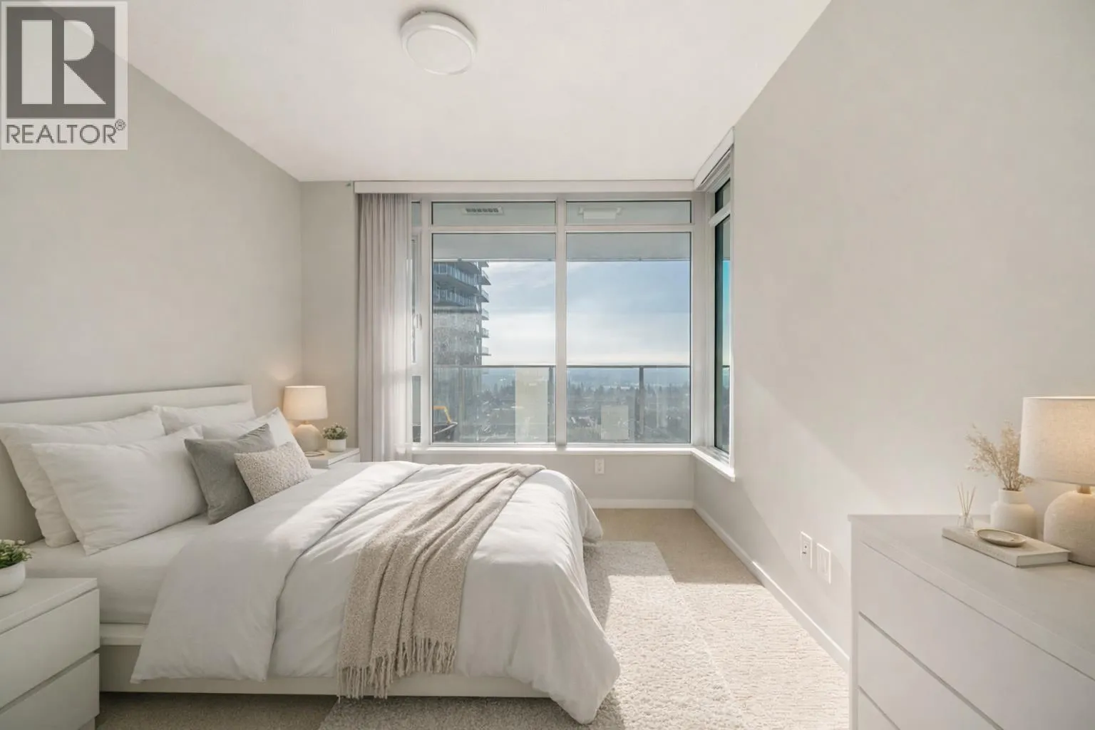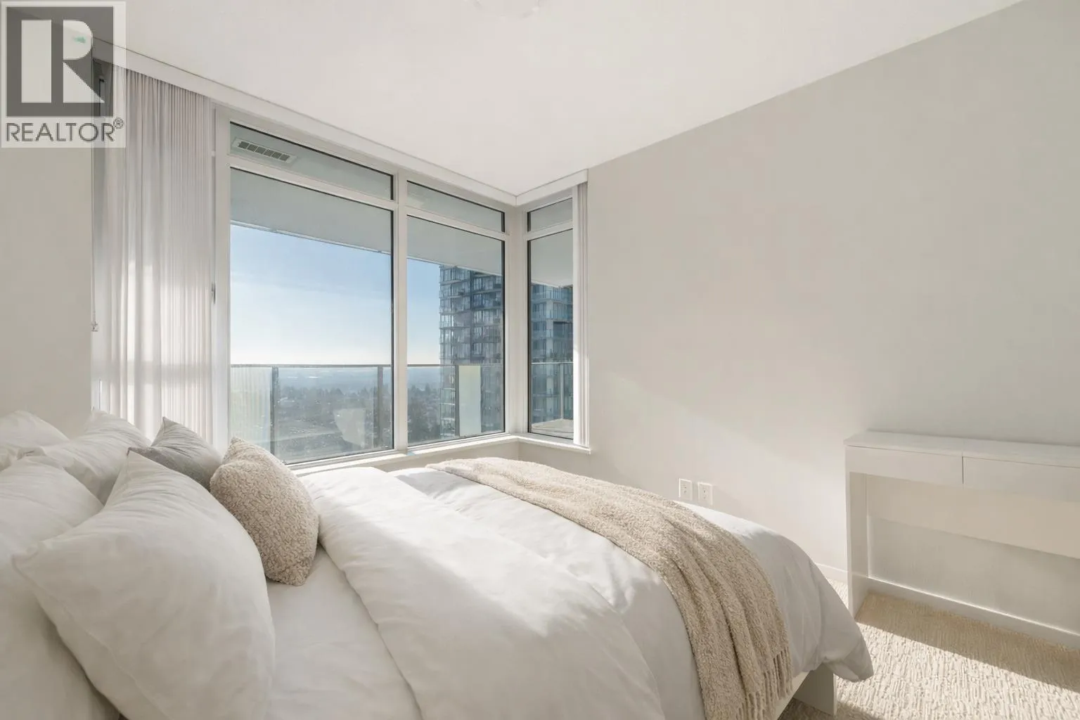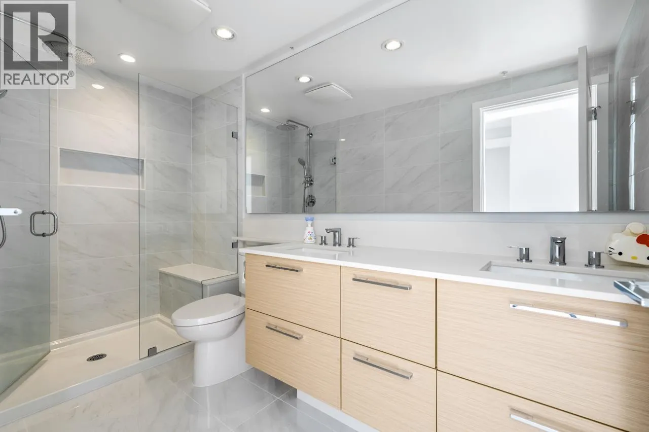 Experience refined city living at its best in this stunning 3-bed, 2-bath south-facing corner unit at Vittorio by Polygon-an iconic address in Metrotown. Floor-to-ceiling glass walls bathe the home in sunlight and frame sweeping views of the city skyline, coastal waters, and distant mountain ranges. The chef-inspired kitchen features sleek, high-end appliances that make cooking a pleasure. Building amenities include