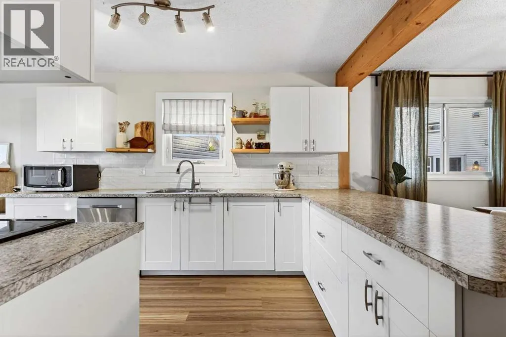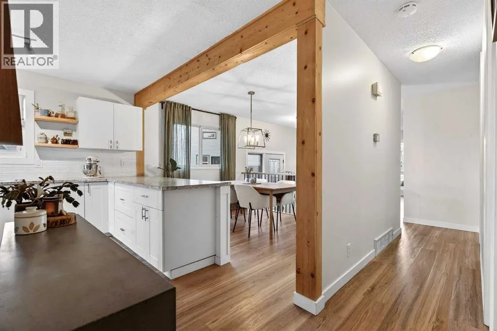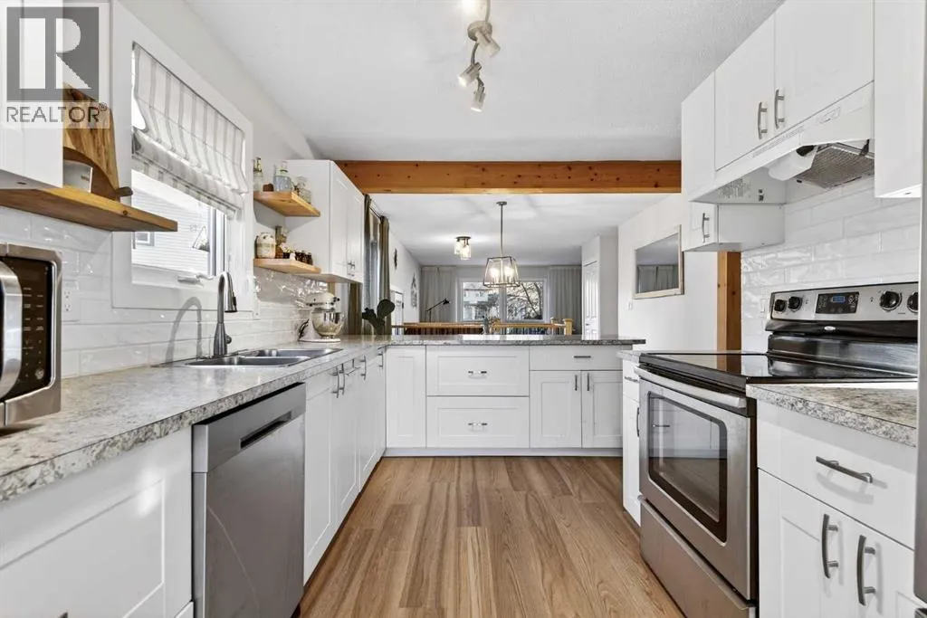 This well-maintained home offers thoughtful updates and a functional layout designed for comfortable living. The main floor features three bedrooms and an updated four-piece bathroom, complemented by luxury vinyl plank flooring and refreshed lighting throughout. The living room is bright and inviting, anchored by a large northwest-facing window. The updated kitchen showcases white cabinetry, stainless steel appliances, a modern backsplash,
