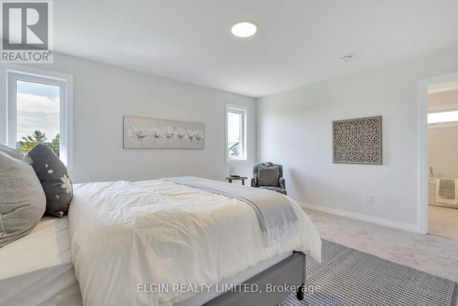 Move-in ready and built by Hayhoe Homes, the ‘Wrencreek’ is a well-appointed two-storey home offering 3 bedrooms, 2.5 bathrooms, and a double-car garage. A covered front porch leads to a spacious foyer with bench seating and a powder room, opening to an open-concept main floor with a designer kitchen featuring quartz countertops, backsplash, a large island, and patio door to