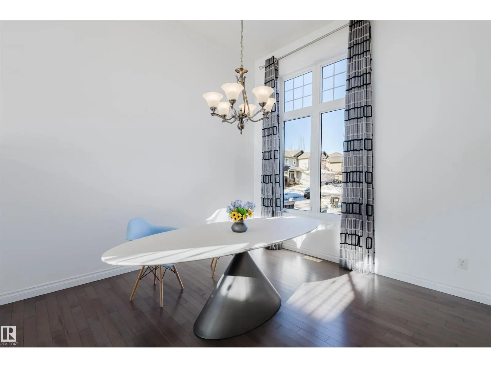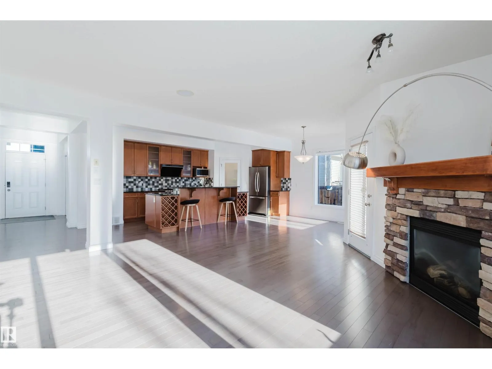 Stunning 2-storey home built by Perry Homes in prestigious MacTaggart, offering nearly 2,600 sq ft of refined living space (incl. 280 sq ft below grade), 4 bedrooms, and 2.5 baths. A striking open-concept design is highlighted by soaring ceilings in the entry, dining, and family rooms. The bright main floor features 9’ ceilings, a spacious great room with stone fireplace,