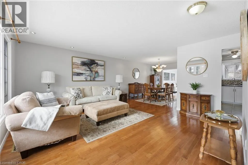 Welcome to this beautifully maintained 4-bedroom, 3-bathroom bungalow in a quiet, family-friendly Dundas neighbourhood surrounded by nature. This home offers spacious, functional living with a rare connection to the outdoors Dundas buyers love. The highlight is the sunroom-style family room with gas fireplace and escarpment views, creating a warm, light-filled space to gather year-round. The main level layout is ideal