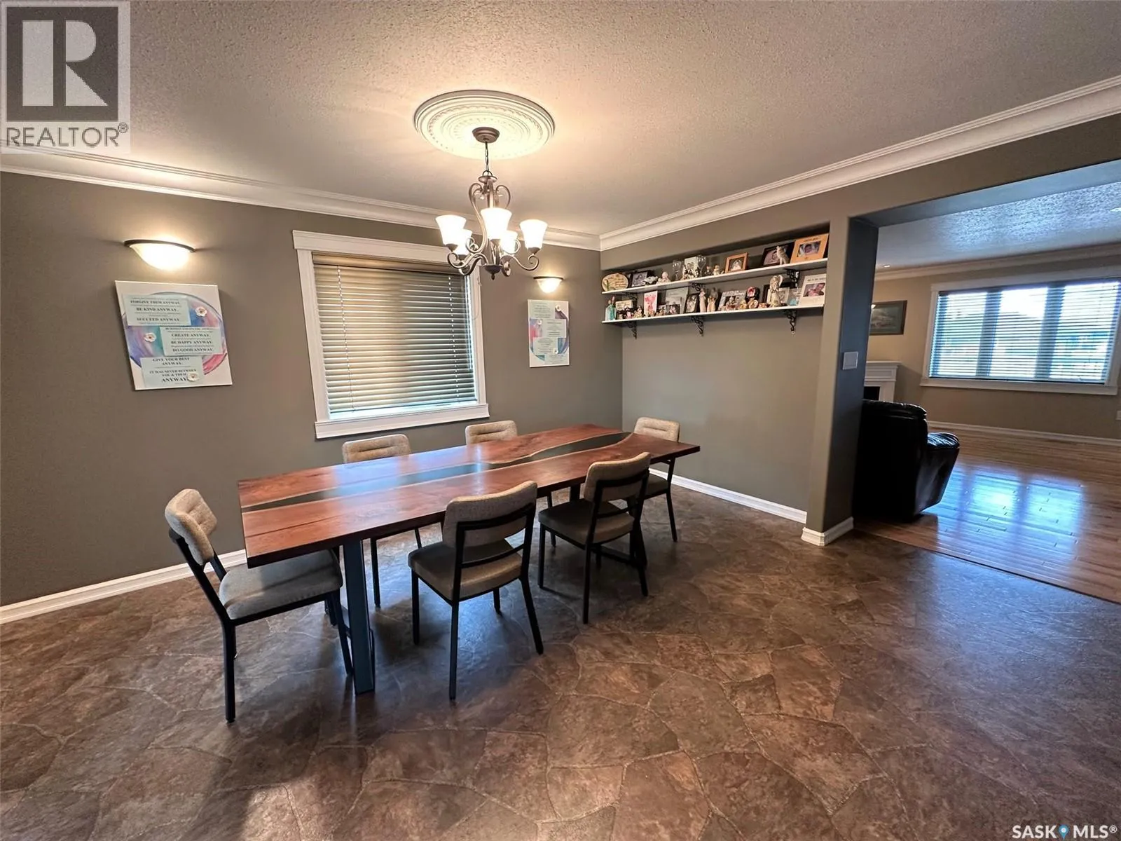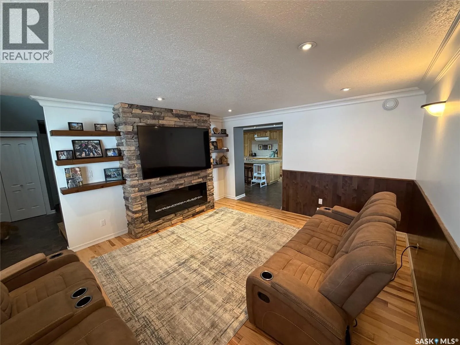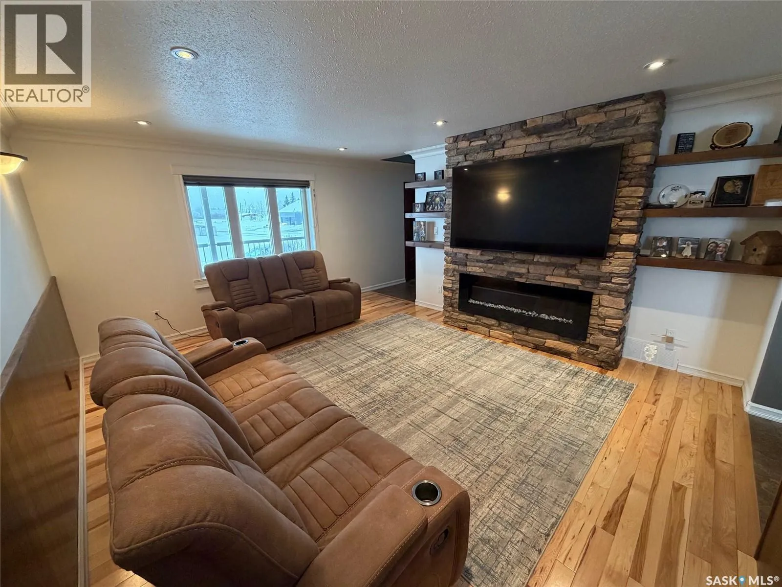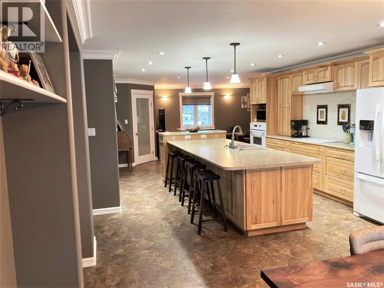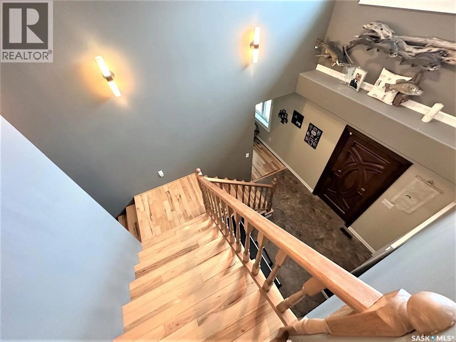 Welcome to 501 Silver Place in the welcoming community of Hudson Bay, SK. Built in 2013, this expansive home offers over 4,000 sq ft of living space with solid 2×8 construction, and blueprints are available upon request. The grand front entrance opens to a striking calico-hickory staircase that sets the tone for the rest of the home. With five bedrooms—four