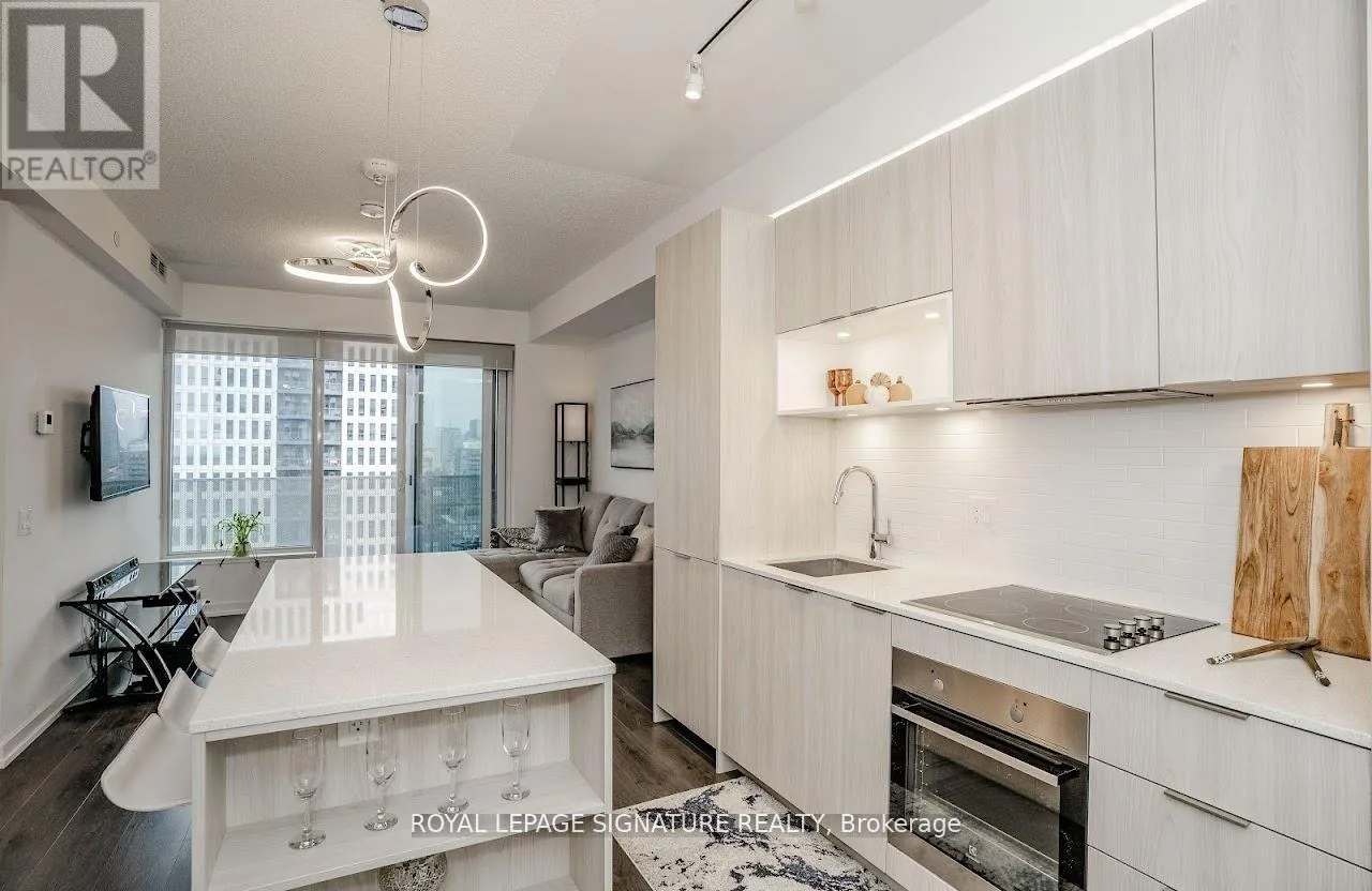 Welcome to “The Wyatt” by Daniel Corp. Modern, Bright and Sleek 1 Den/Office Unit With 1 Parking Space and 1 Storage. Functional and Well Designed Layout With 9 foot Ceiling, Laminate Flooring Throughout, Huge Windows Flood The Space With Natural Light. Freshly Updated Unit With Professional Repainting. Modern Upgraded Kitchen With Centre Island, Quartz Countertops, Cabinet Lighting, and Built-In Stainless