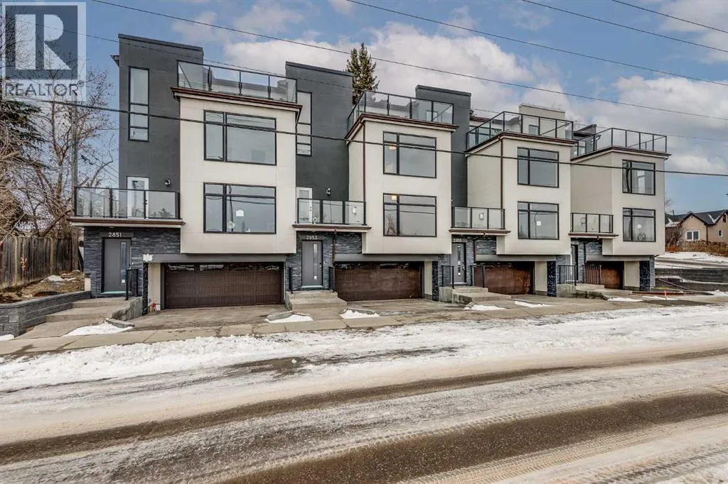 Shaganappi Point Golf Course. The entry level features a double attached garage with driveway parking, & lots of extra storage space. Head upstairs to the main living level which showcases a bright, open-concept design with durable vinyl plank flooring throughout and a welcoming living room anchored by a gas fireplace. The kitchen has Quartz countertops, built-in stainless steel appliances, a gas cooktop, a large island with seating, & even a walk-in pantry. A 2pc powder room finishes off the 2nd floor. Heading upstairs to the 3rd floor, you’ll find the 1st balcony off of the landing, perfect for a relaxing morning coffee! This floor is also home to the dual master layout, with two spacious bedrooms positioned for privacy. Each bedroom features large windows, a walk-in closet, and its own luxurious 5pc ensuite, making this layout perfect for roommates, guests, or shared living. A conveniently-placed laundry room completes the 3rd floor. Up the stairs again will bring you to the versatile loft space complete with its own 3pc bath. The loft can function as a 3rd bedroom, ideal WFH office space, media room, gym, or flexible space to suit your needs. A second balcony on this level extends the living space outdoors, finished with composite decking and glass railings, there is plenty of space for loungers and a fire table while offering elevated views over the surrounding community and Calgary’s downtown skyline. Set just steps from Bow Trail, this home is just minutes from everything including the Bow River for relaxing nature walks & Westbrook Mall for shopping and amenities. Nearby is the Shaganappi Point LRT Station for quick downtown access, 17th Ave shops and dining, and you are surrounded by established inner-city neighbourhoods with endless parks, coffee shops, restaurants with just a few minutes commute to Downtown. Access to the rest of the city is easy through several major roadways including Bow Trail, Crowchild Trail & 17th Ave. Jumping in the car: Downtown is an 11 min drive (5.7KM), Airport is a 25 min drive (23KM), & Banff is a 1 hr 22 min drive (123KM). (id:64429)