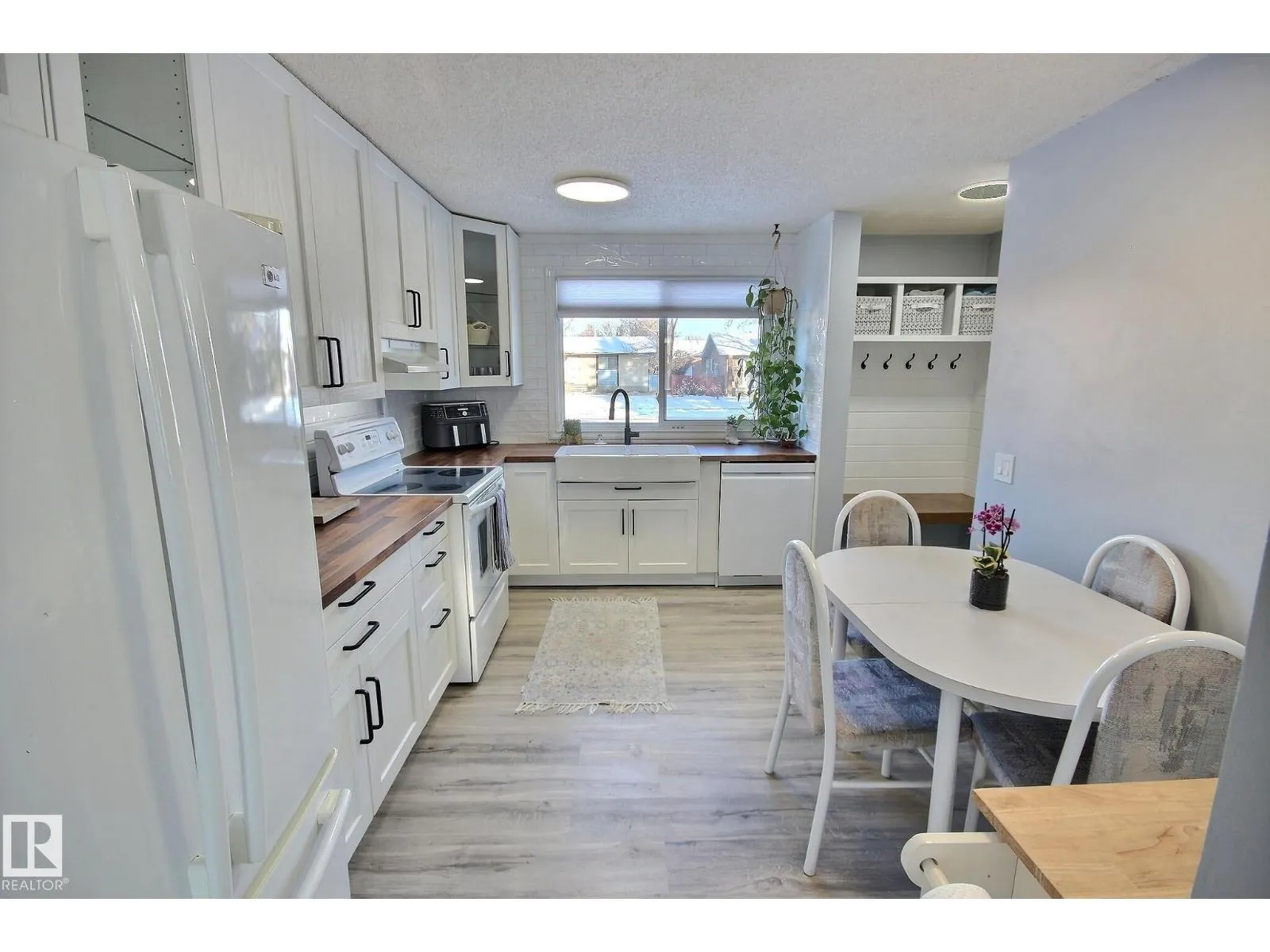 GREAT Value! Welcome to this move-in ready 2 story, perched on a huge lot with an oversized double detached garage! Main level boasts newer vinyl flooring throughout, a renovated white kitchen features pot/pan drawers, glass feature cabinets & trendy farmhouse sink, living room open from the kichen with big window and Garden doors that lead to the beautiful backyard