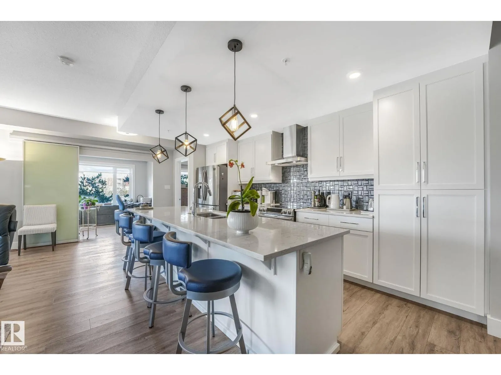 Pristine Original Owner 2 Bed, 2 Bath + Den Condo. Step into Style & Taste! Featuring 1316 sf, 9′ Ceilings, Expansive Windows w/Custom Blinds, Kitchen w/Quartz Counter Top, 10′ Island, SS Appliances & Crisp White Shaker Cabinets w/ Extended Uppers. The Open Layout is Perfect for Entertaining w/ Seating at the Island, Large Dining Space, Welcoming Living Rm & Huge