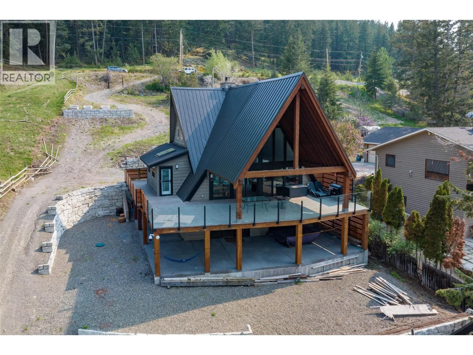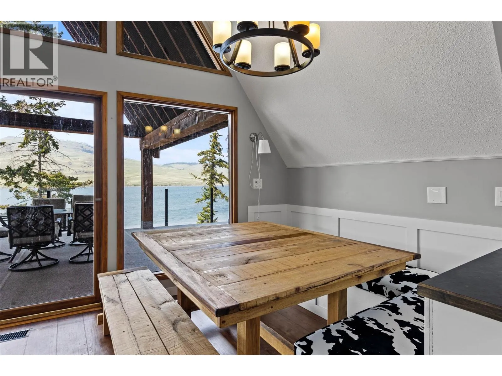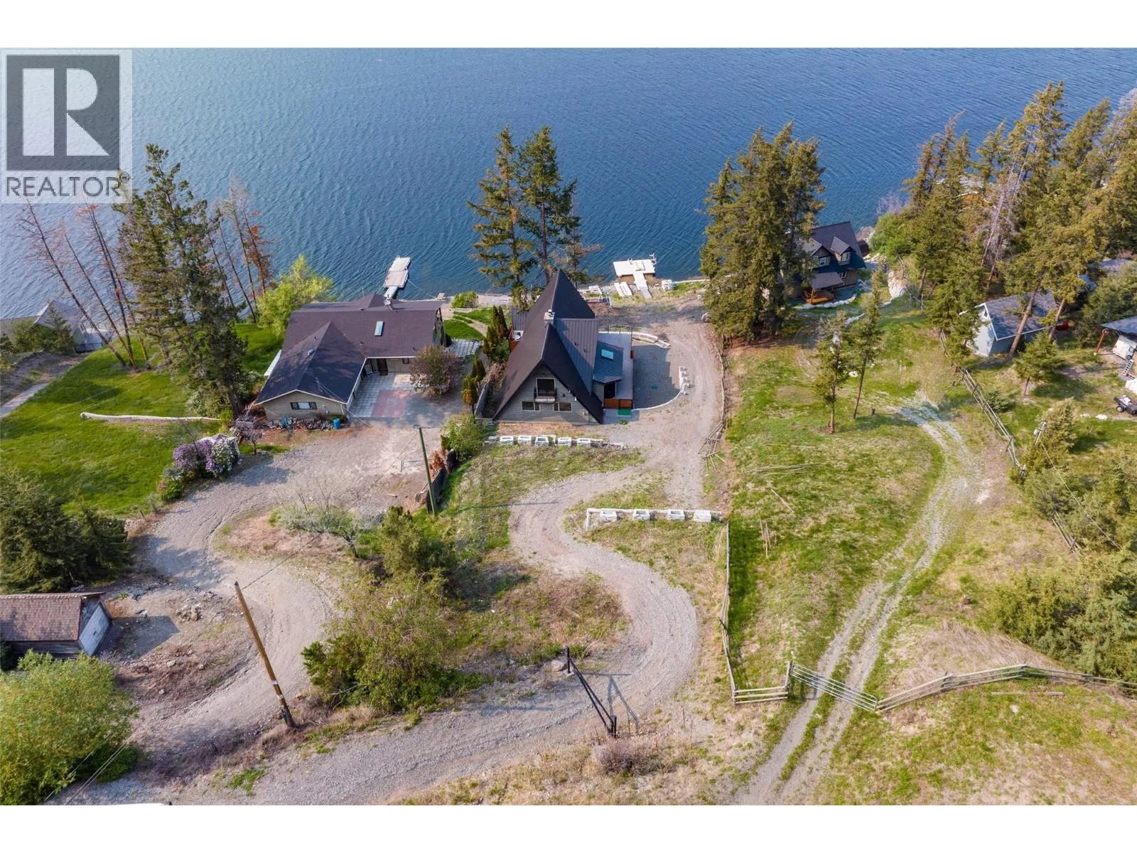 Waterfront home at Stump Lake! This 0.62 acre sunny paradise is a quiet escape from city life with tons of room to make memories with family, friends and guests. On the main level find a modern kitchen, 2 bedrooms, 1 bathroom, and vaulted living room with wood fireplace and floor-to-ceiling windows that opens to a huge 42×15 covered deck, perfect