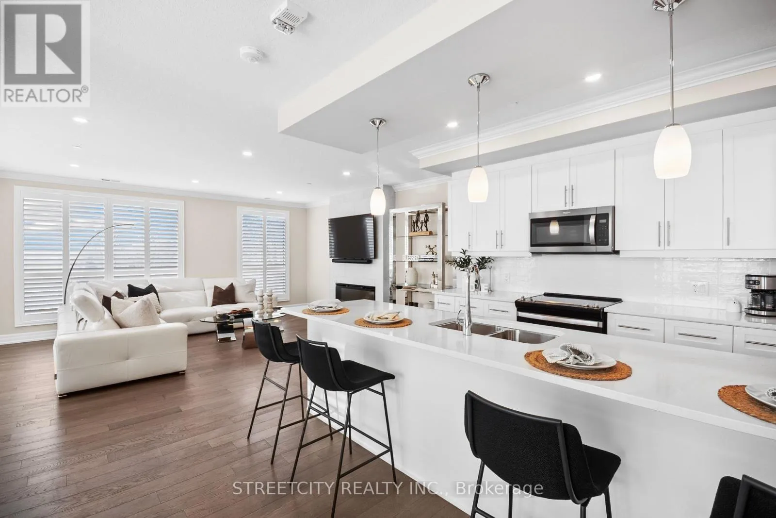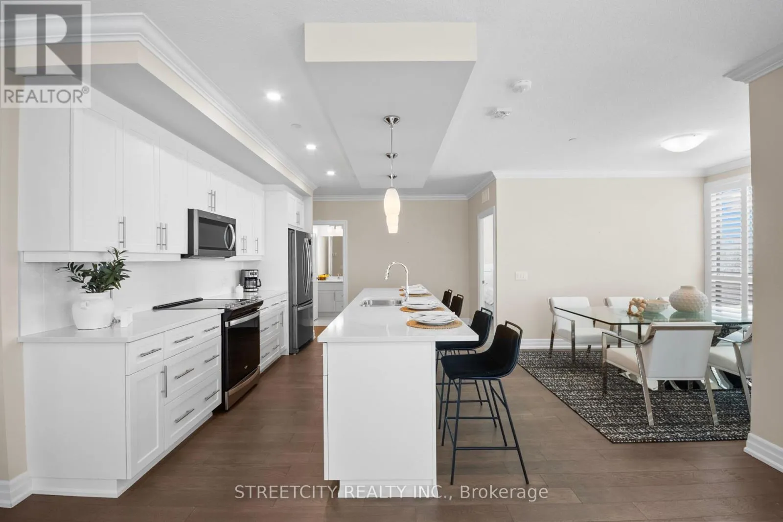 Welcome to this bright and spacious 2-bedroom, 2-bathroom corner unit offering panoramic views of the Sunningdale Golf Course. Located on the desirable north-west corner of a Tricar building, this stunning condo features 1,440 sq. ft. of well-designed living space and is filled with natural light thanks to its extra-large windows. The open-concept layout showcases a modern white kitchen with quartz