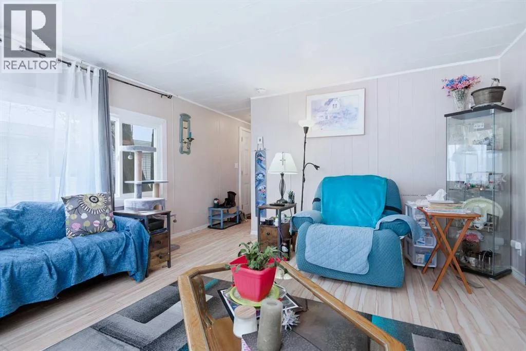 Affordable and move-in ready manufactured home located in Red Deer Village Park. This well-maintained home offers 2 bedrooms and 1 full bathroom, a spacious front living room, and a good-sized kitchen with adjoining dining area—perfect for everyday living. Recent updates include windows and siding. Shingles, hot water tank, and furnace all replaced in 2019. The fenced yard provides