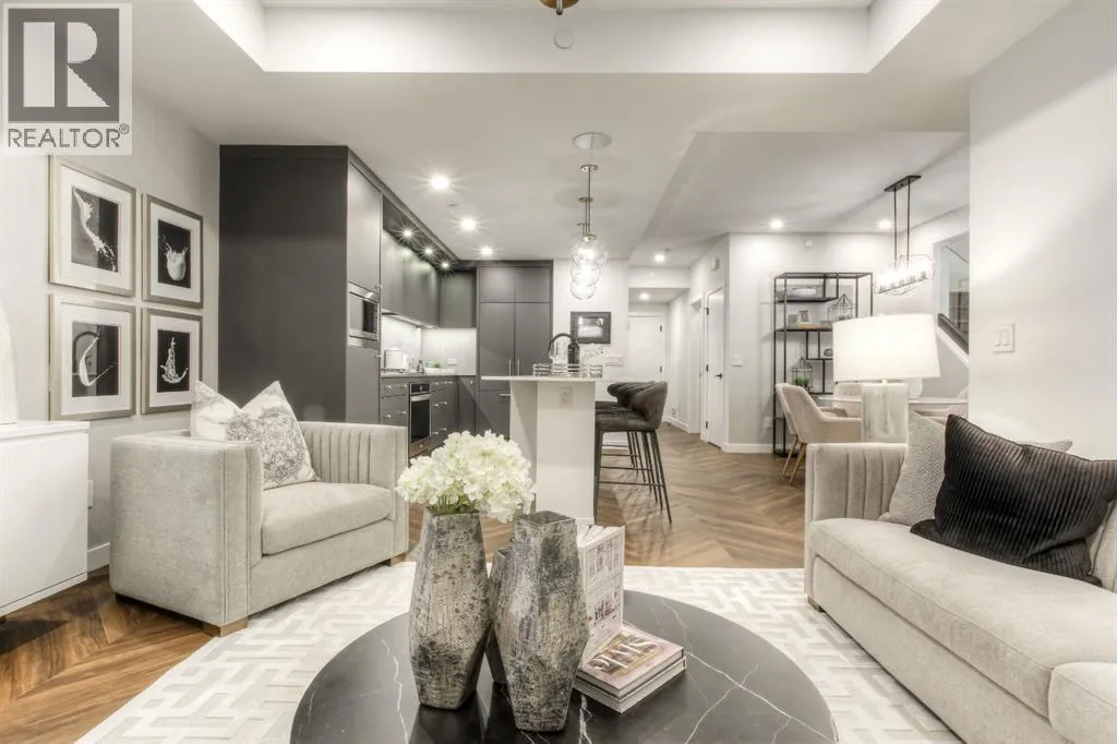 Located in the master-planned community of West District, Gateway offers an exceptional standard of living. This meticulously designed 2-level Brownstone is a perfect blend of modern elegance and sophisticated craftsmanship, featuring 3 Bedrooms, 3 Bathrooms, and a versatile main floor Den/Bedroom. It also includes 2 titled underground parking stalls, offering both convenience and security. From top to bottom, this