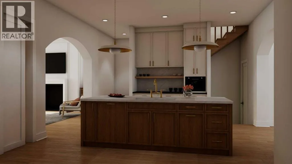 10-foot ceilings & wide-plank white oak hardwood floors, creating a bright, open atmosphere. A dedicated front office with custom wrought-iron detailing provides an ideal work-from-home setup. The dining area offers custom millwork & built-ins & flows seamlessly into the chef’s kitchen, equipped with premium Miele appliances, including a 6-burner dual-fuel range, Miele refrigerator, Miele Speed Oven, & Bosch dishwasher. A well-designed walk-in pantry with extensive cabinetry, beverage fridge, & small-appliance storage connects directly to the mudroom with extensive built-ins, helping keep daily life organized. The expansive living room is anchored by a custom gas fireplace & oversized sliding doors that open to the sun-filled south backyard & spacious deck, ideal for indoor-outdoor entertaining. The upper level features 9-foot ceilings throughout. The primary bedroom overlooks the backyard & includes a walk-in closet with furniture-grade cabinetry & custom built-ins, plus a spa-inspired 6pc ensuite with steam shower, soaker tub, heated floors, private water closet, & premium fixtures by The Royal Flush. Two additional bright bedrooms, a well designed family-friendly main bath (pocket door separates the toilet/shower area from the dual vanity enabling multiple parties to use the same simultaneously), & a convenient upper-level laundry room with a sink, ample storage & hanging) complete the upper level. The fully developed lower level offers a media space, games area, fitness room, fourth bedroom, and full bathroom. Open-joist duct routing eliminates bulkheads, enhancing ceiling heig ht, while in-floor radiant heat and high-performance triple-pane windows ensure year-round comfort and energy efficiency. An insulated & drywalled double garage provides ample parking & storage. Located half a block from Altadore Elementary & Rundle Academy, one block from River Park, & walking distance to Marda Loop, this home delivers an outstanding balance of lifestyle, location, & design. Call today to learn more and discuss customization options! (id:62650)