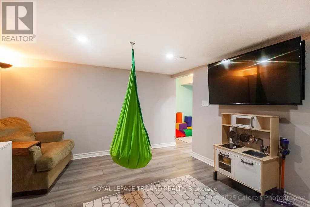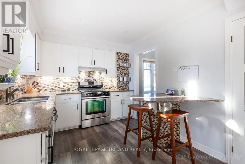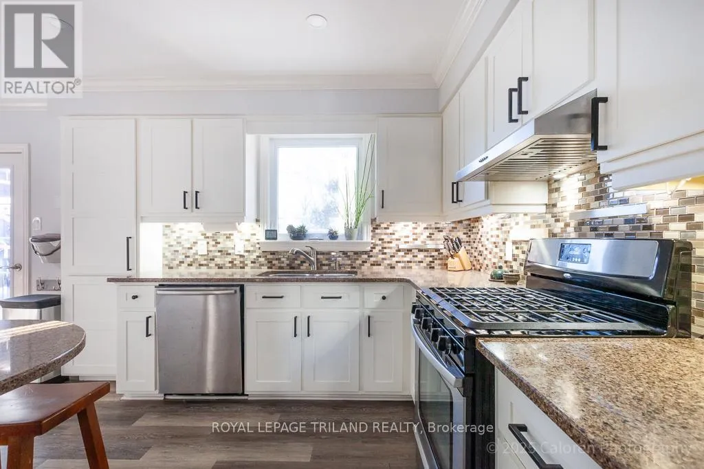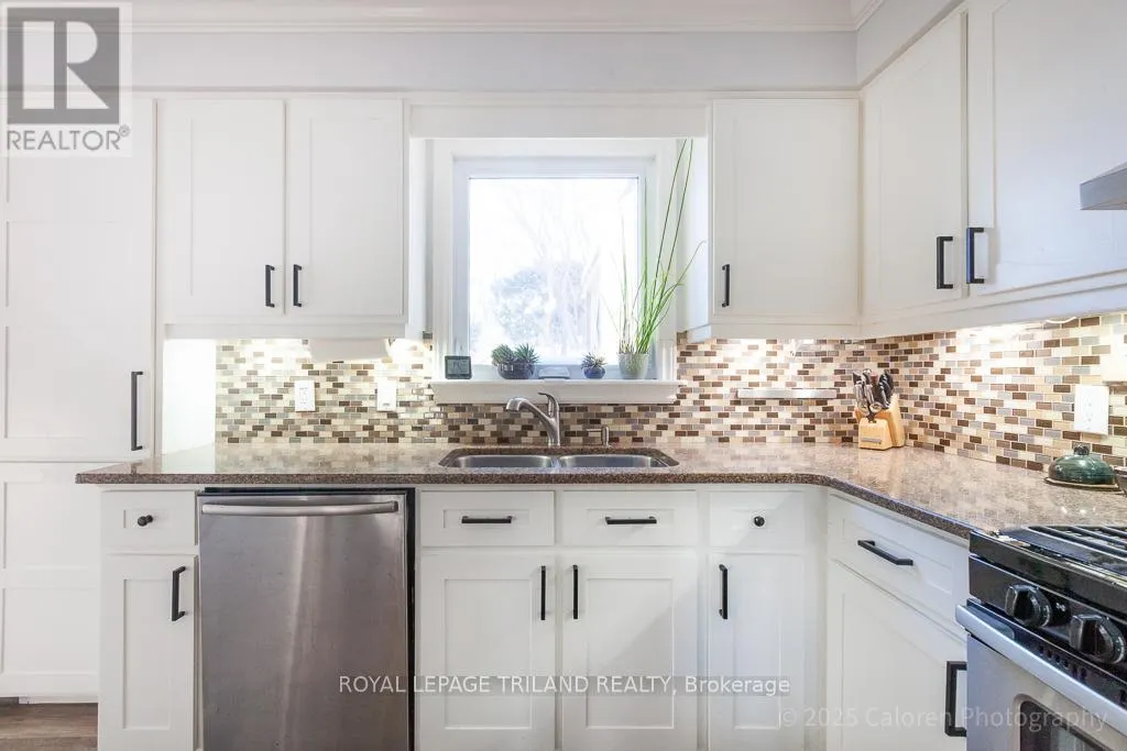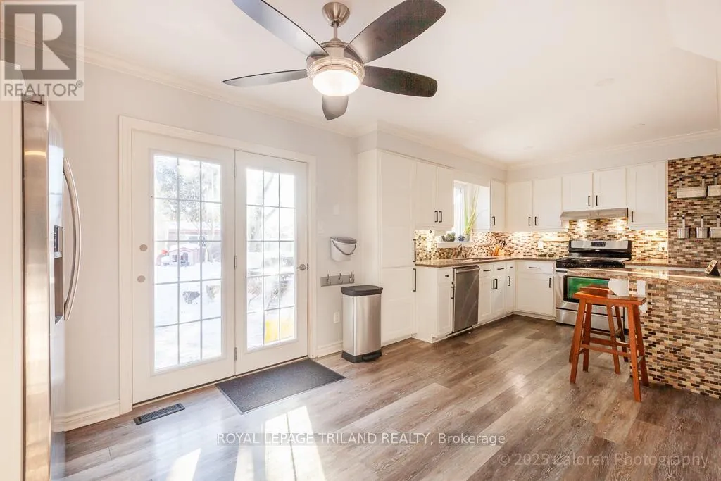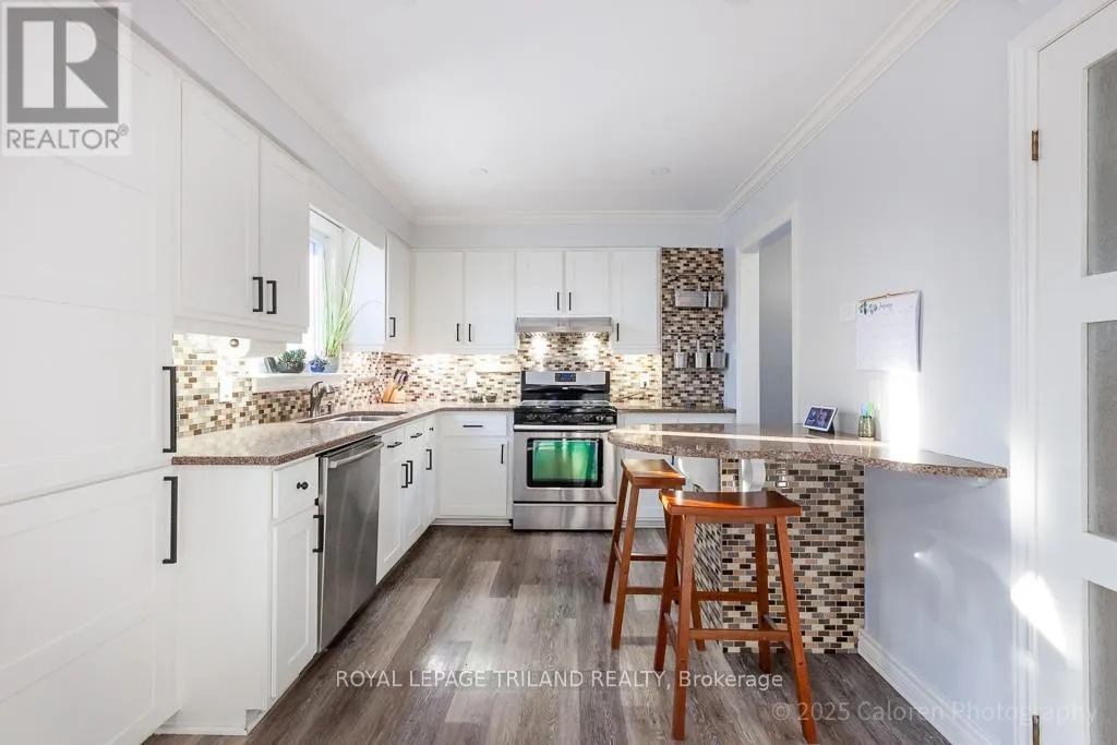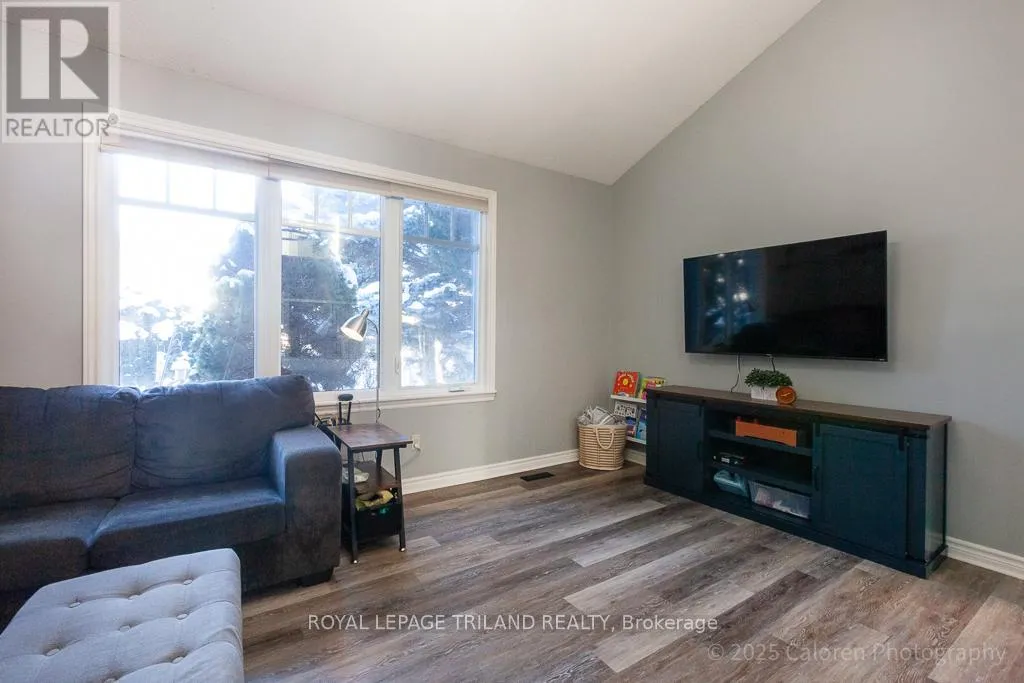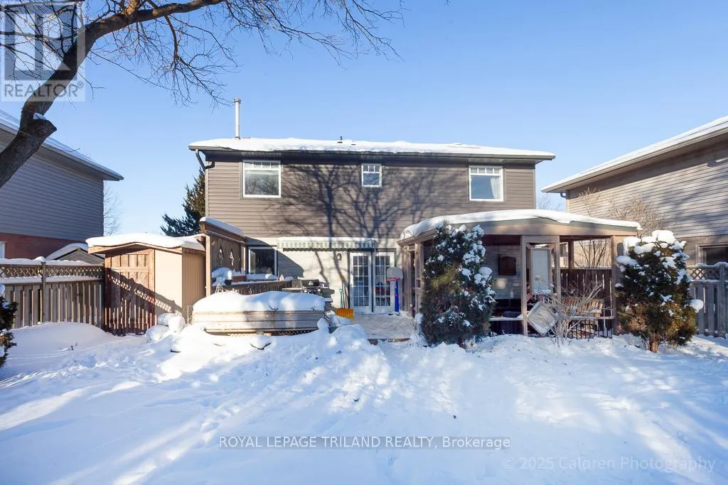Welcome to this beautifully maintained 3-bedroom, 2.5-bathroom family home nestled on a quiet, family-friendly crescent in highly sought-after South London. This residence offers comfortable living in a superb location close to parks, schools, shopping, and quick access to Highway 401. A bright and inviting foyer opens to a spacious living room enhanced by a vaulted ceiling and skylights, creating an