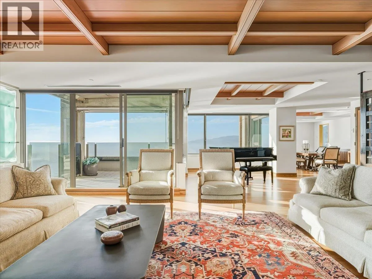Les Terraces Exclusive Dundarave Waterfront Living. With only 11 private residences. 1 suite per floor with 3,600 sq. ft. of house-sized living in one of West Vancouver´s most prestigious boutique waterfront buildings. Timeless architecture, refined coastal design, and quality, the residence features expansive principal rooms, 3 bedrooms plus office, open layout, multiple balconies, and coffered wood ceilings. Floor plan offers