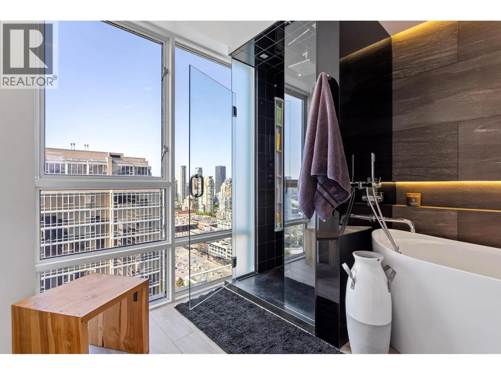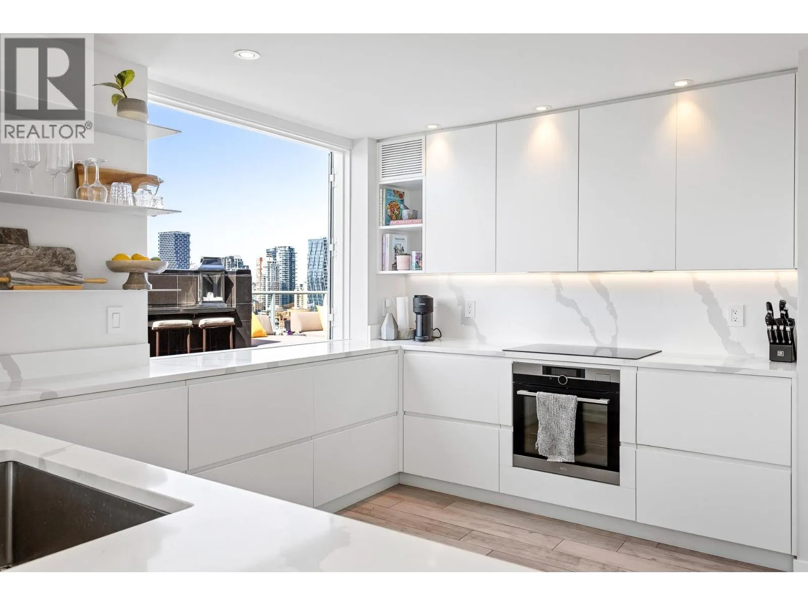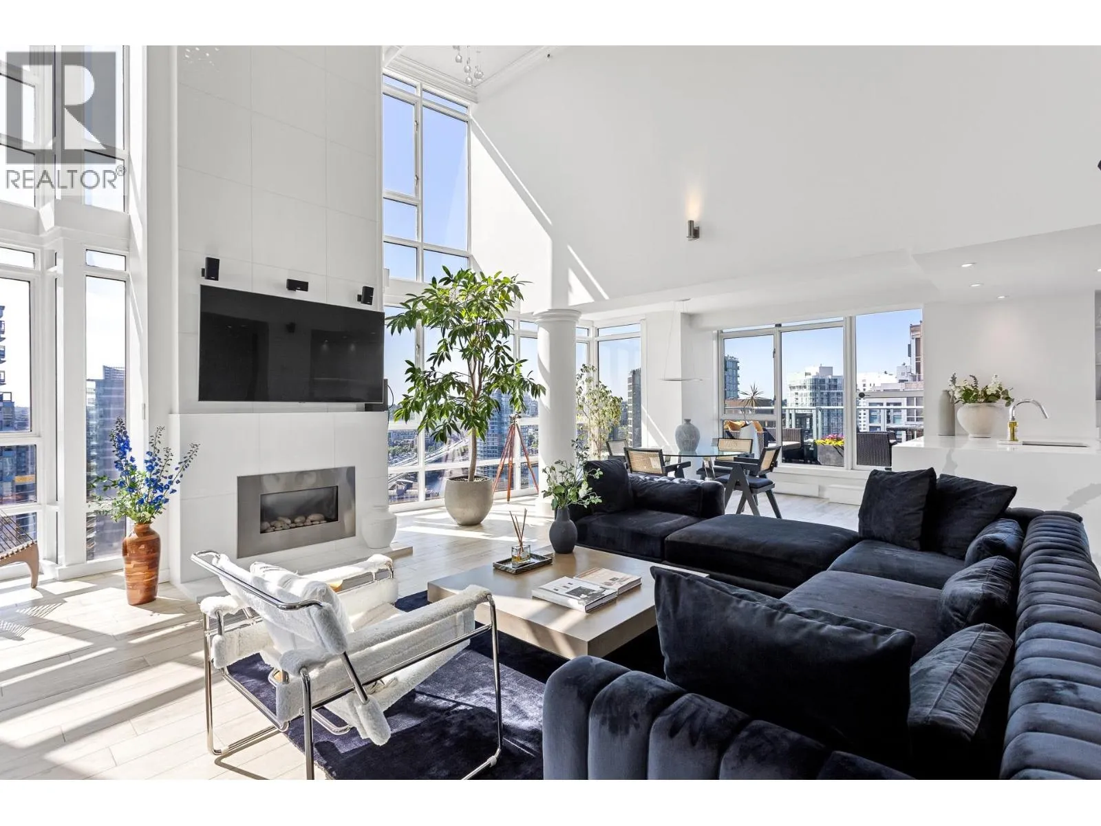 A truly rare offering, this stunning 2-level Penthouse occupies half of the entire 30th floor & boasts over 1000 sq/ft of panoramic wrap-around patios with breathtaking ocean, city & mountain views. With more than 2000 sq/ft of fully renovated luxury interior, this residence is designed for elevated living. Step into a bright, open-concept floor plan featuring soaring 16-ft ceilings, expansive