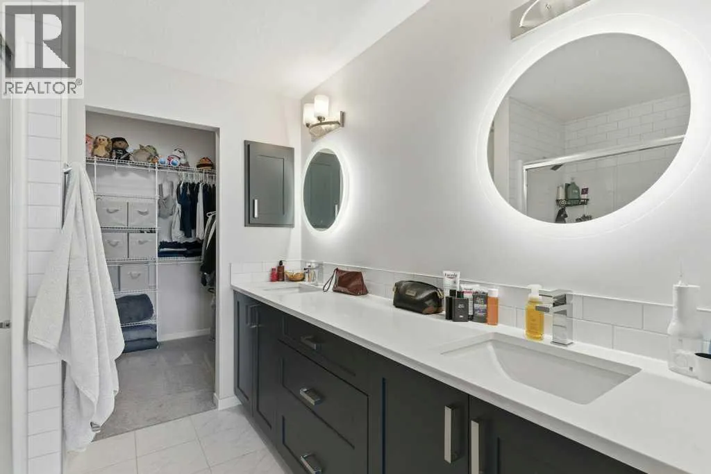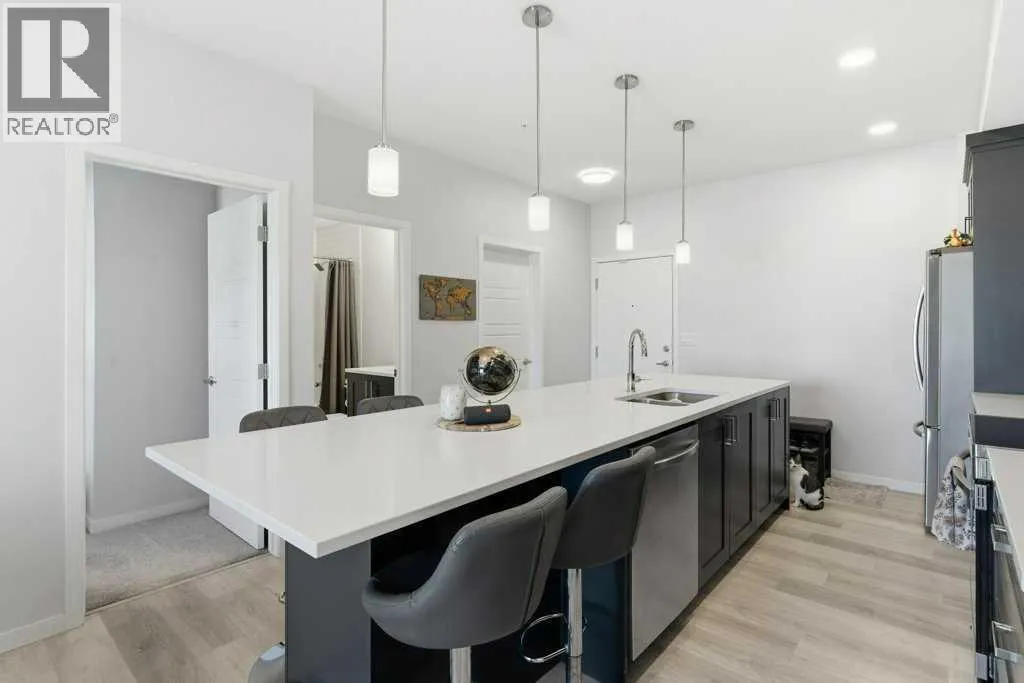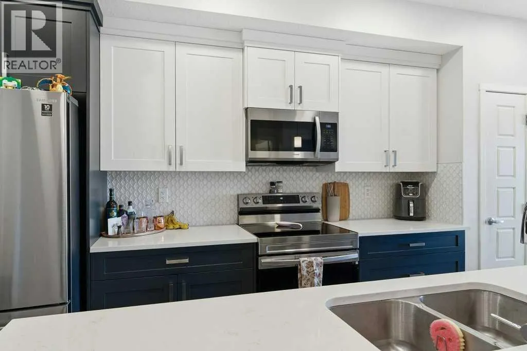 Experience elevated condo living at The Rise of Harvest Hills in this impeccably upgraded third-floor unit offering two bedrooms and two full bathrooms with a true show-suite feel. Flooded with natural light from expansive windows and enhanced by 9’ ceilings, the open-concept layout is both airy and inviting. The designer kitchen features quartz countertops, a custom tile backsplash, two-tone white