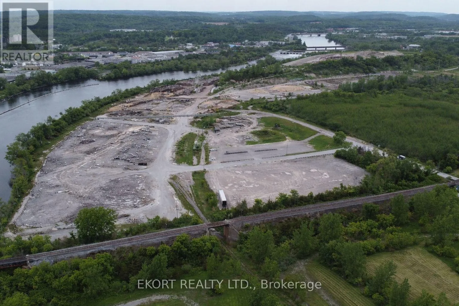 This 94-acre site is located less than 4 km from Highway 401 and is on the banks of the Trent River. The site was previously used as a pulp and paper mill, all production and manufacturing buildings have been demolished and lagoons have been decommissioned and back-filled. Storm water holding tanks and maintenance shops remain operational. Approximately 60 acres of