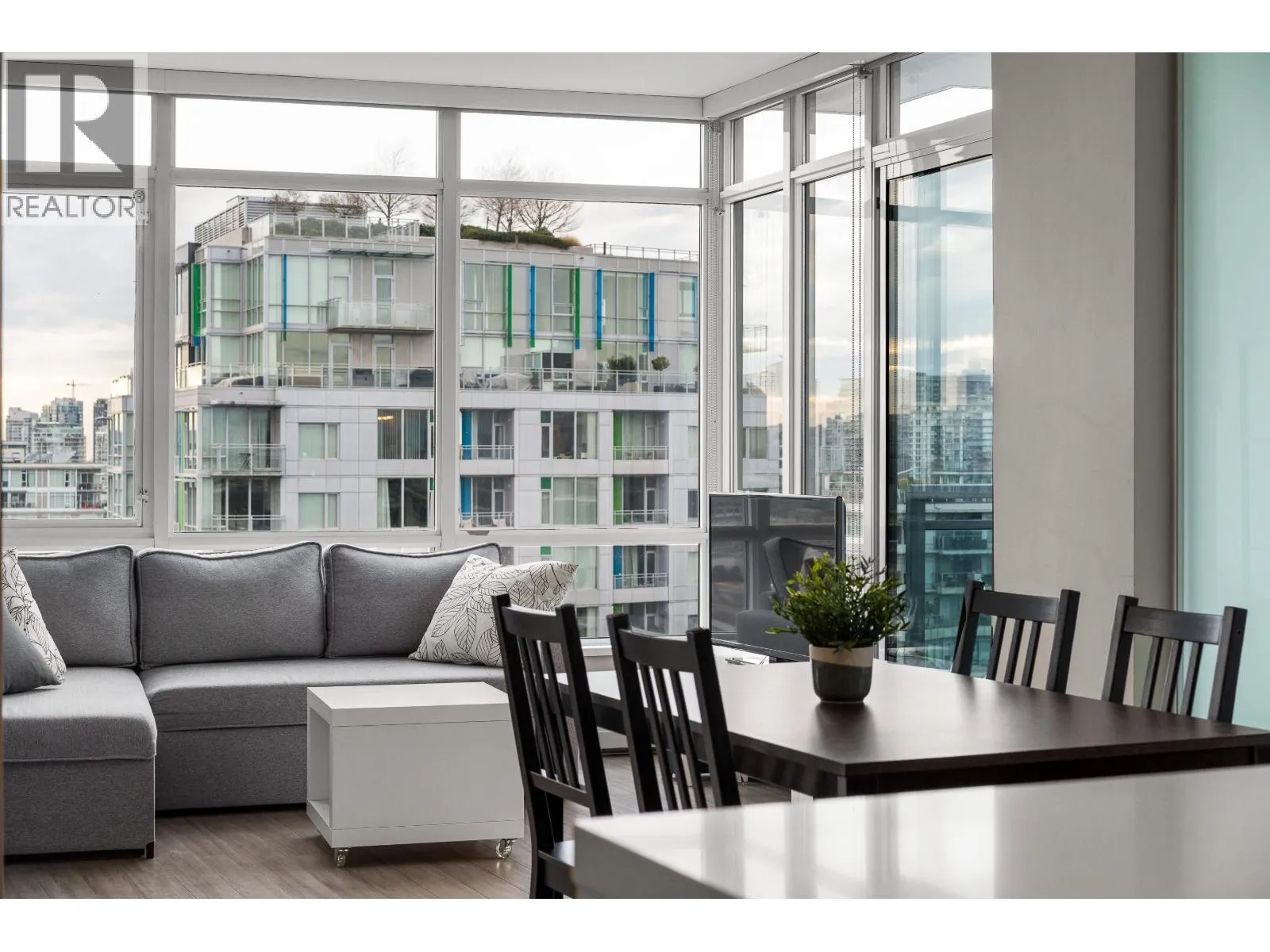 Soak in panoramic water, mountain, and city views from this bright corner home in Opsal, perfectly set in Olympic Village. Floor-to-ceiling windows capture stunning sunsets, while the ideal layout features 2 bedrooms + office/den and 2 baths, an open kitchen with a dedicated pantry, and a balcony for morning coffee. The primary bedroom includes a walk-in closet. Enjoy excellent amenities