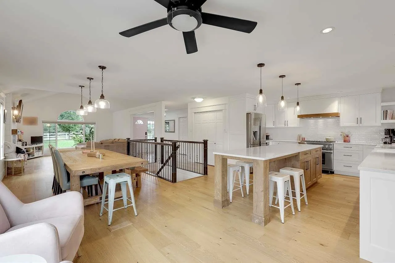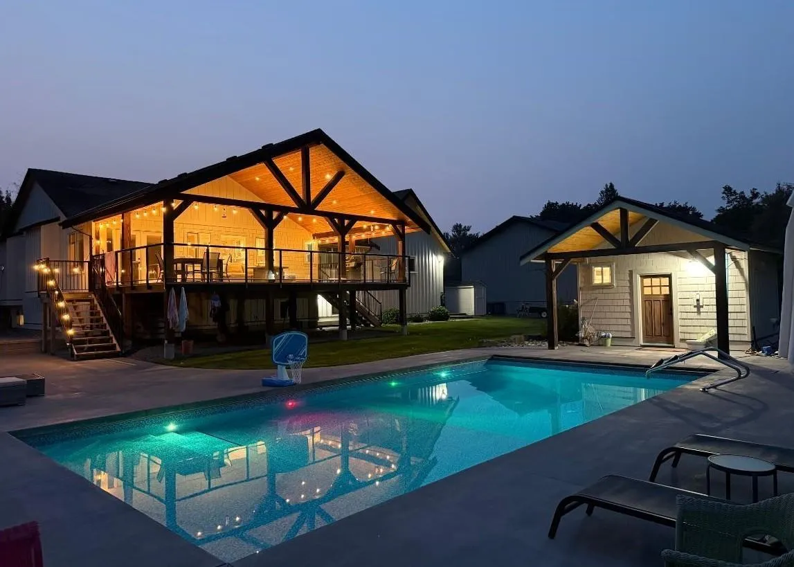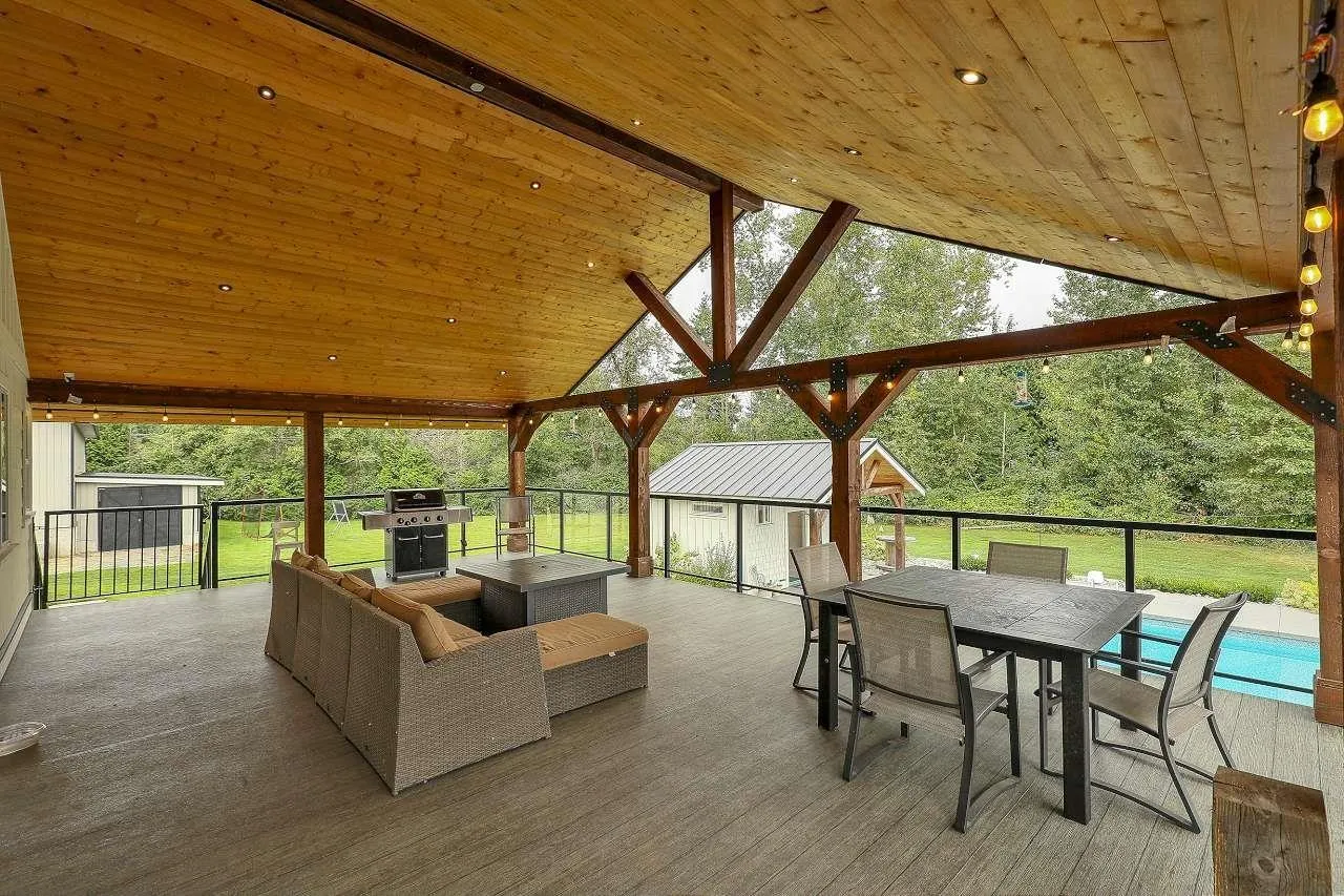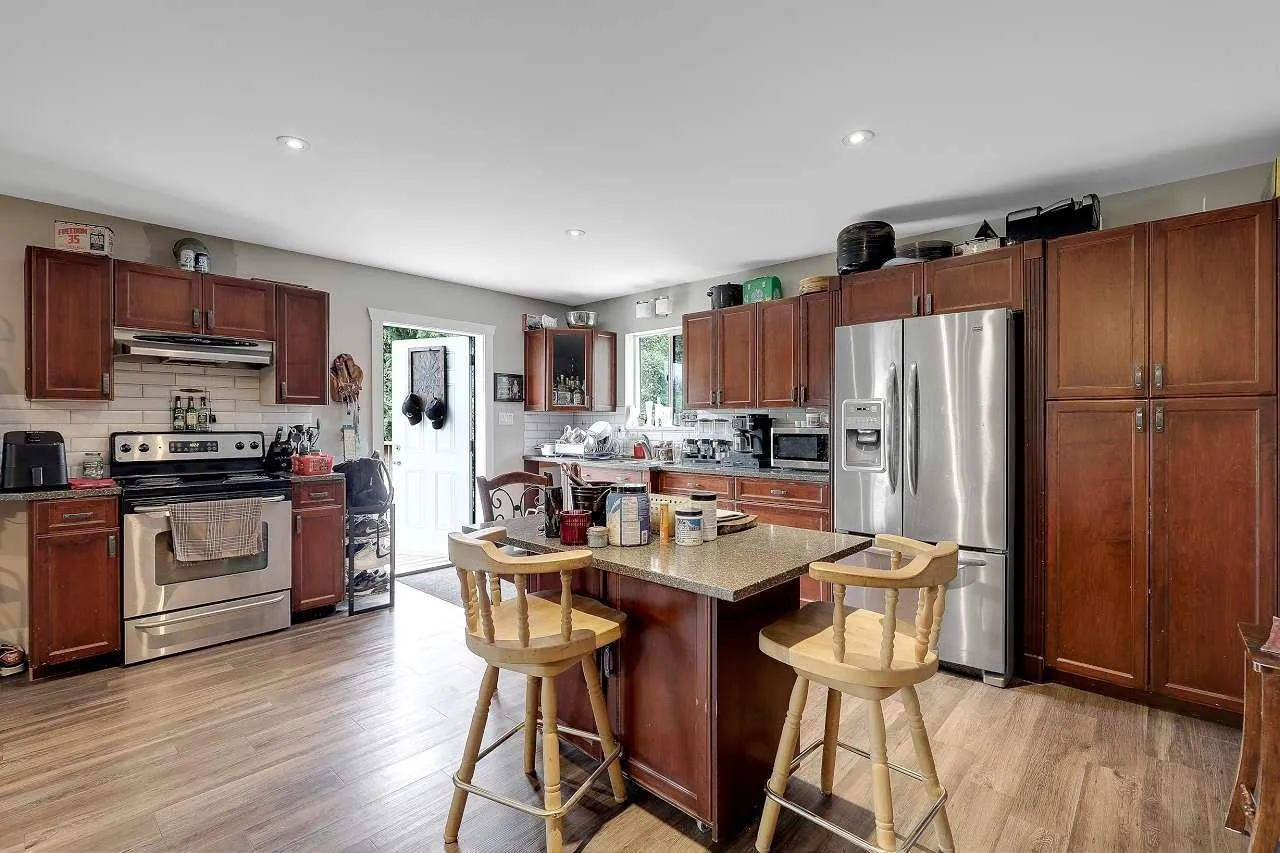 RARE!!! Rancher W/O Bsmt HUGE 70’x45′ SHOP on private, flat 5.27 acres plus coach house & mobile home. This level entry home has been completely remodeled on main floor, all new hardwood, bright open kitchen, new cabinets, counters, appliances, updated baths, huge covered deck overlooking pool with auto safety cover, large concrete patio and pool house. Bsmt does have kitchen.