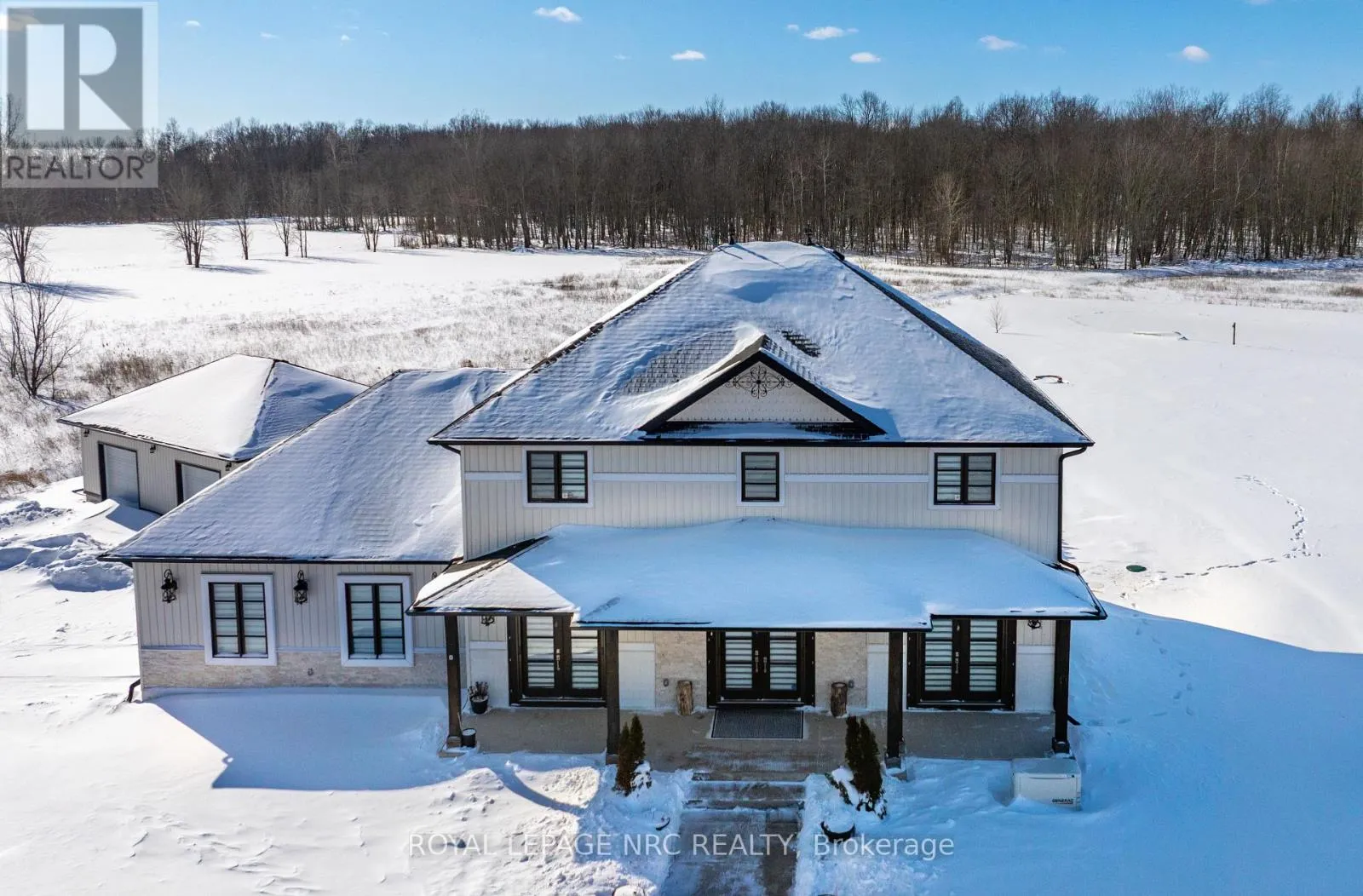 Exquisite custom-built home on 2.8 acres with pond, offering the perfect balance of country serenity and modern luxury.Bathed in natural light with 9′ ceilings throughout, the heart of this home is a chef’s kitchen featuring an oversized island, built-in appliances, and a butler’s pantry, ideal for effortless entertaining. The rear of the home opens to tranquil landscaped views, seamlessly blending