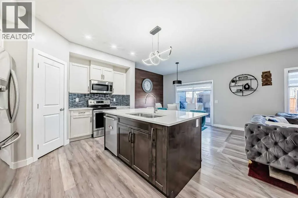 OPEN HOUSE SATURDAY, FEB 21 & Sunday, FEB 22FROM 2-4PM****Located in one of Chestermere’s most sought-after communities, Kinniburgh, this upgraded semi-detached home offers both style and functionality. A spacious front entry welcomes you with an immediate sense of light and openness. The main level features durable vinyl plank flooring throughout, a large laundry room with potential for additional storage. There