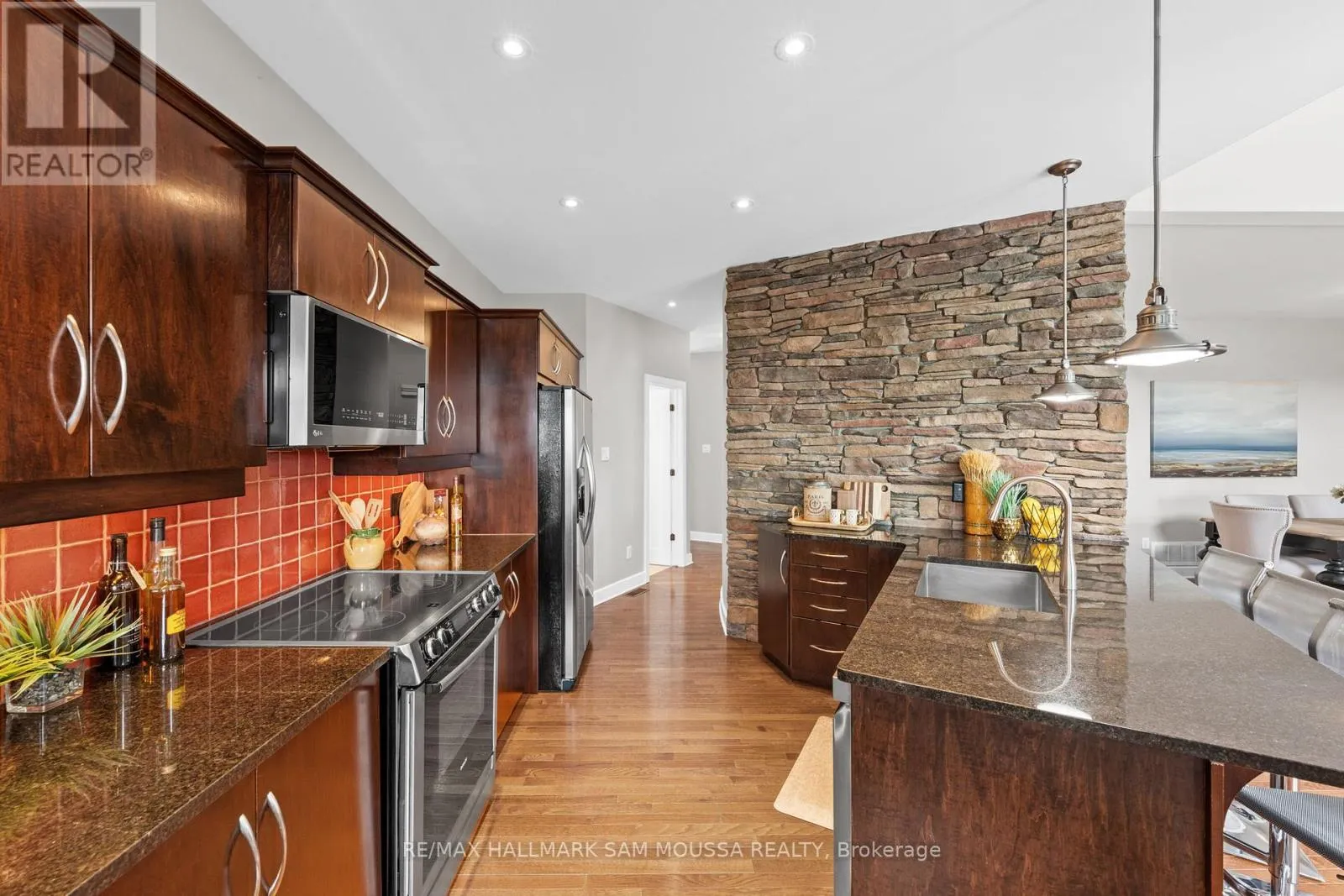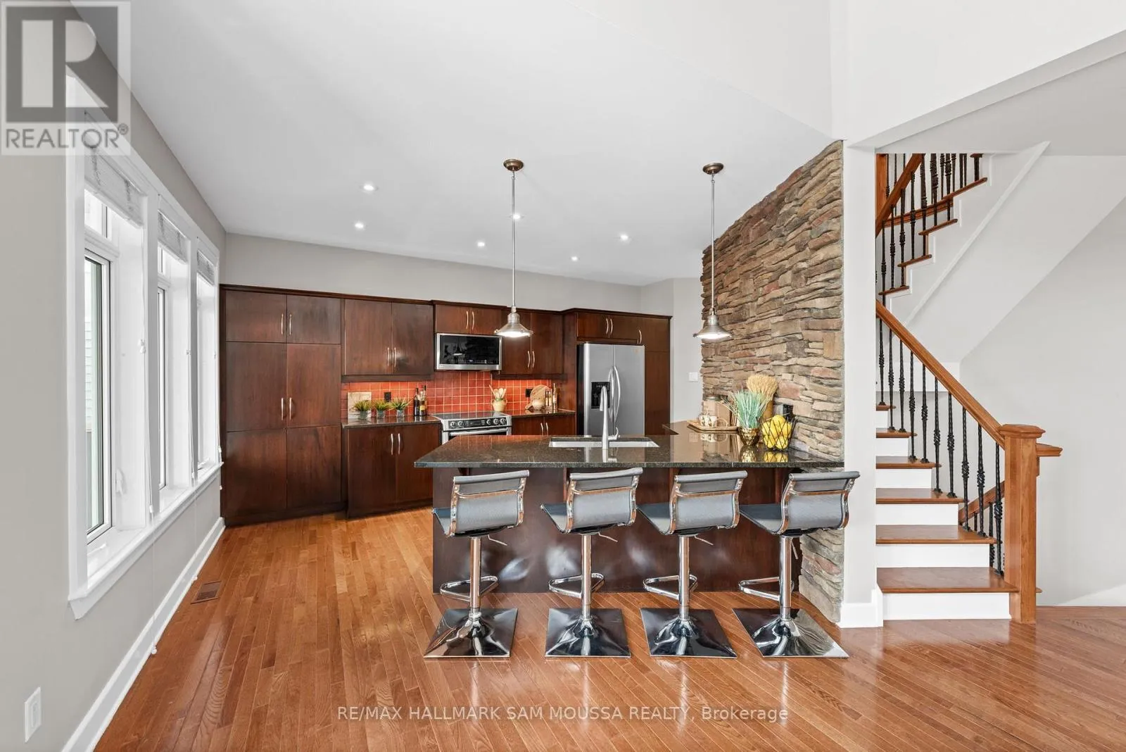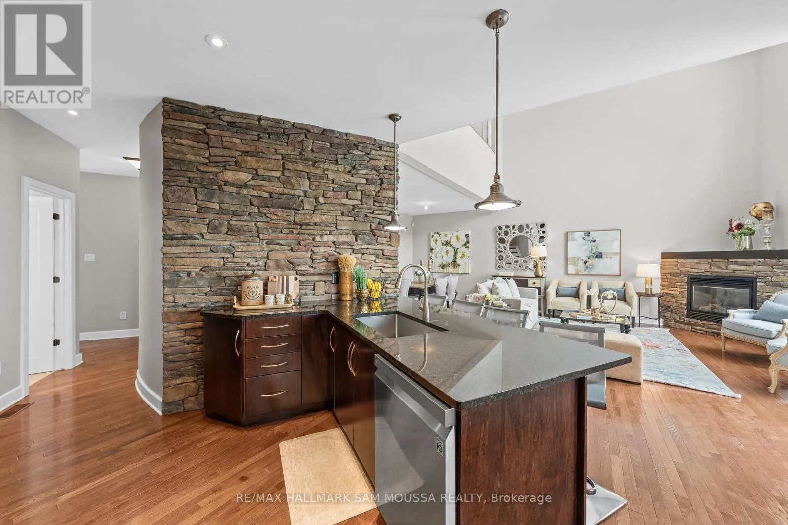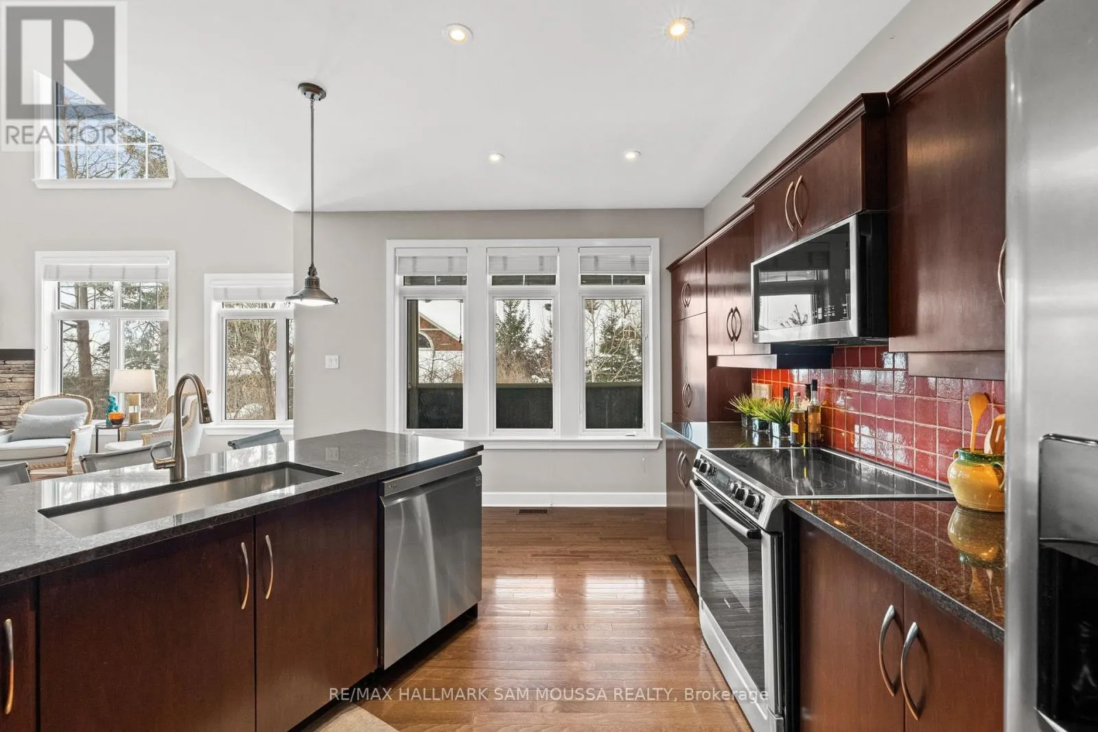Tucked away in the sought-after enclave of Marshes Village, this beautifully upgraded end-unit townhome offers refined living. Thoughtfully maintained and tastefully enhanced. A foyer with Italian tile sets the tone, opening to open-concept living and dining spaces. Soaring ceilings, expansive windows, and a stone fireplace create a warm atmosphere. The kitchen is a standout, granite counters, stainless steel appliances, and