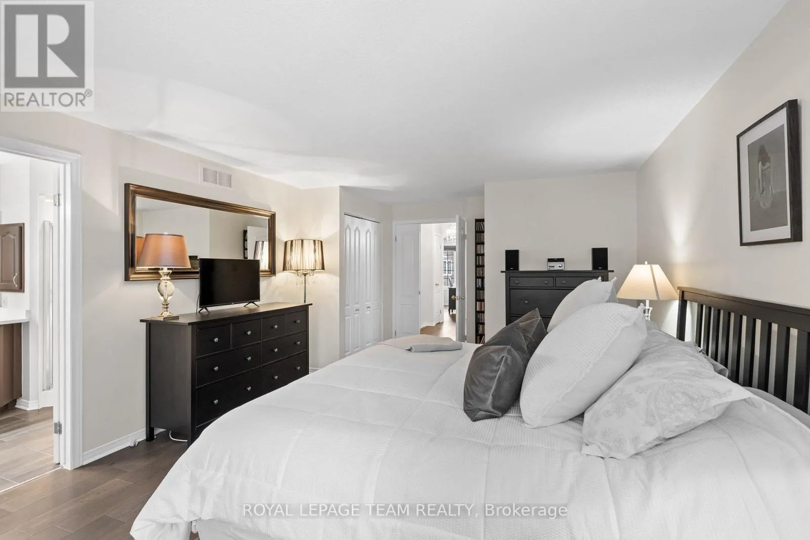 Maintenance Free Living! Condo fees include snow removal and lawn care! Welcome to this beautifully updated end-unit condo townhouse in the highly sought-after Centrepointe neighbourhood. Surrounded by mature trees, this bright and private home offers a peaceful setting with added natural light-an ideal retreat at the end of the day. The spacious layout features four bedrooms, including three on the