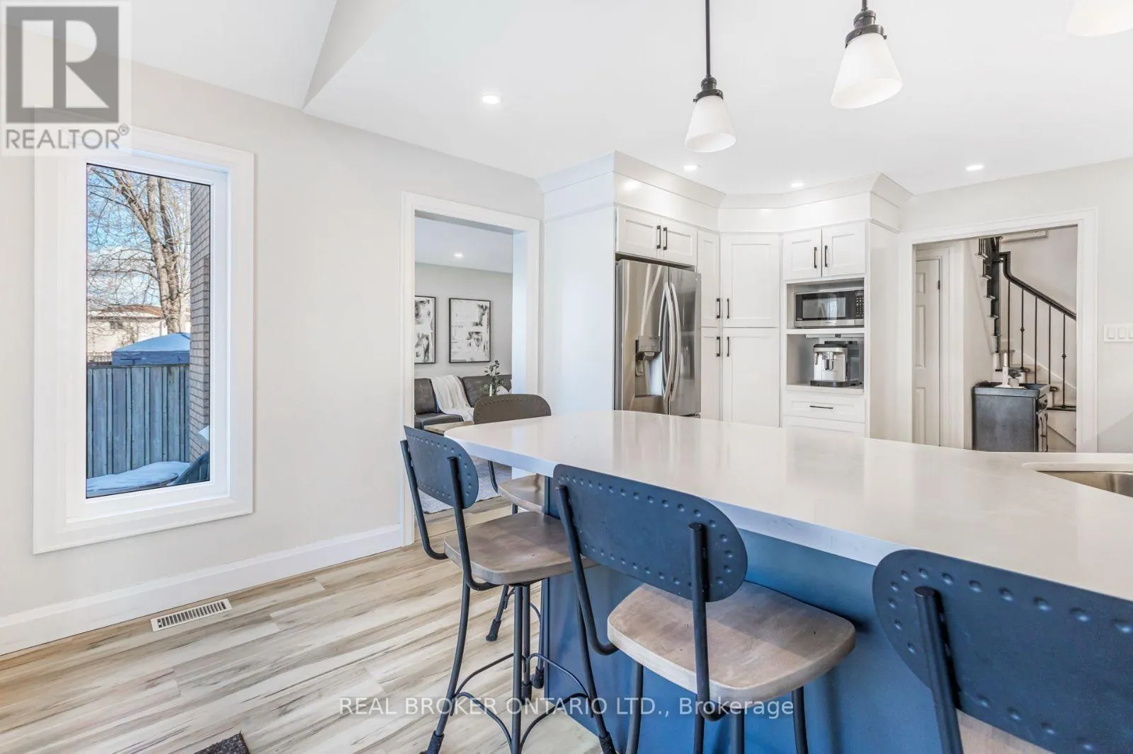 Welcome to 104 Seaton Place Drive – a beautifully updated detached home on a large pie-shaped lot with a fully fenced, private backyard complete with a hot tub, ideal for family fun and outdoor entertaining. Bright and carpet-free throughout, this home features vaulted ceilings, quartz countertops, stainless steel appliances, and an abundance of natural light. The main floor offers an