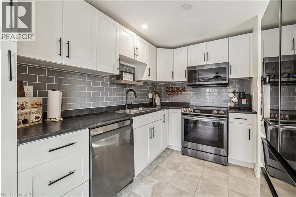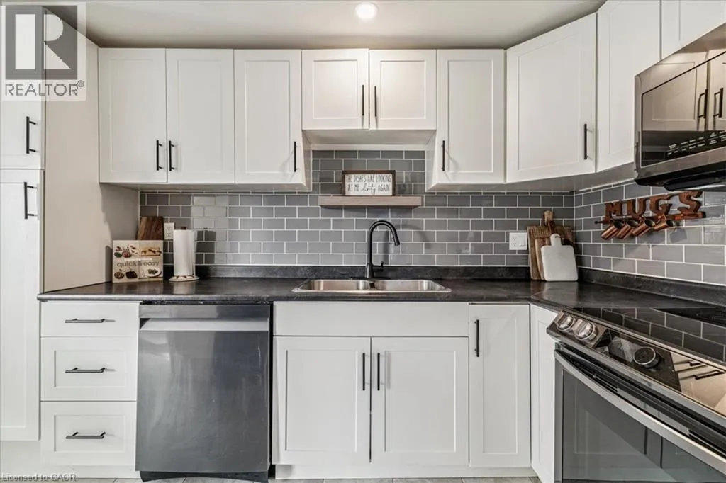 Beautiful and well cared for 2 bedroom bungalow located on a quiet court in North Galt. Lovely white shaker style kitchen with grey subway backsplash tile, stainless steel appliances, grey porcelain flooring and pot lights. French doors from the dining area lead to a wooden deck with a gazebo, perfect spot for entertaining in the summer. The third bedroom has