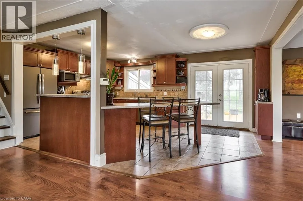 A very spacious 4-level side split featuring a 2-car tandem garage and parking for up to 5 vehicles, nestled in a serene country setting. Offering approximately 2,200 sq. ft. of living space (as per owner), this beautifully renovated home blends comfort, functionality, and tranquility. Enjoy seamless indoor-outdoor living with a walkout to a covered porch, overlooking extensive tiered wood