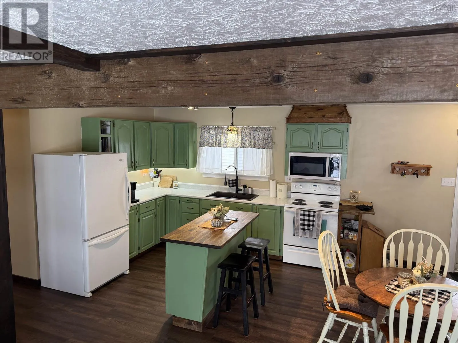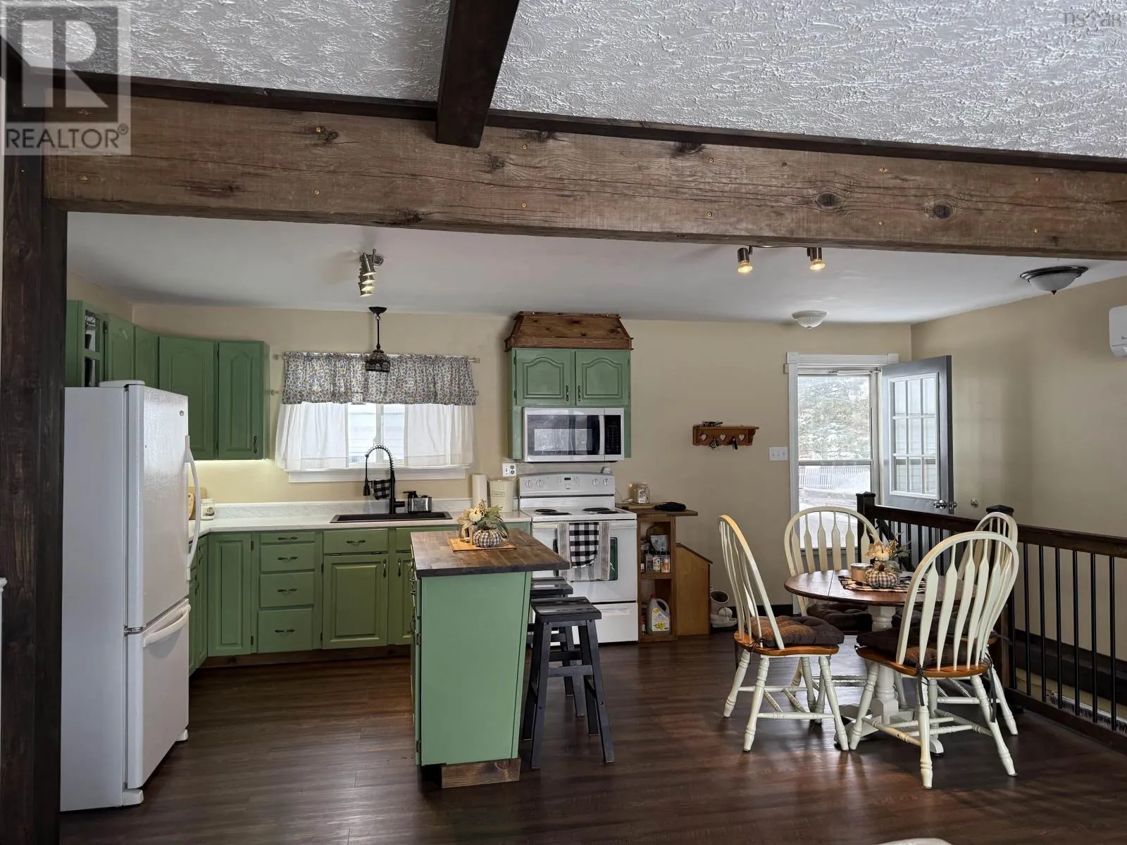 This property offers a charming country-inspired feel within a convenient town setting. The fenced backyard is accessible from the patio, providing a private outdoor space. Additional features include a wired garage with a wood stove for heating, an electric garage door, and a newer 20×16 garage. Over the years, windows, doors, roof, and siding have been updated to enhance durability