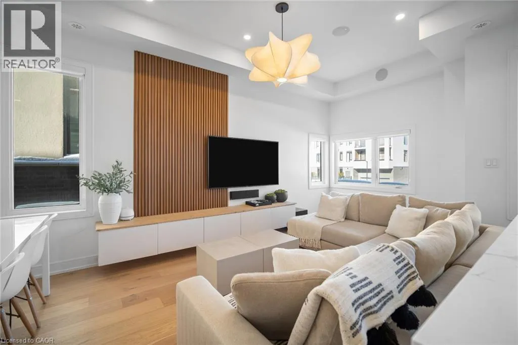 Freehold end-unit townhouse offering three stories of pristine living. This sun-drenched home features wide-plank hardwood flooring throughout and an open-concept layout designed for both comfort and style. Soaring 10-ft ceilings on the main level enhance the sense of space, while thoughtful details include custom built-in closets in every bedroom, main floor built in speakers and designer lighting throughout. This home
