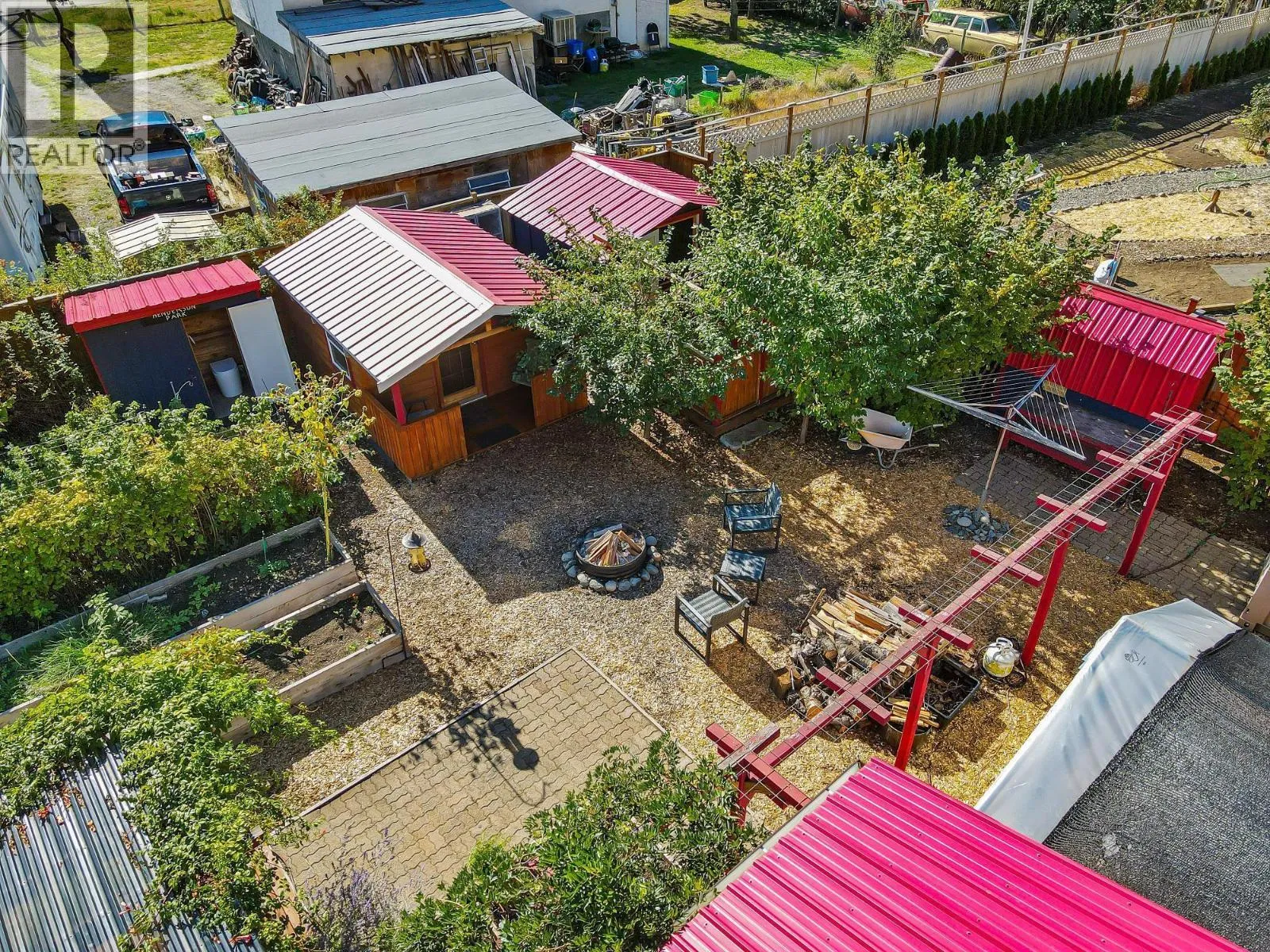 This unique property in Spences Bridge could be a homesteader’s dream or a gardener’s delight. The lot is large and the house has seen many recent updates. There are 6 finished outbuildings, 3 of which could serve as guest cabins. The 2 smaller ones are 9′ 4″” square, and the container is 7.5′ x 15′. There are also three outdoor