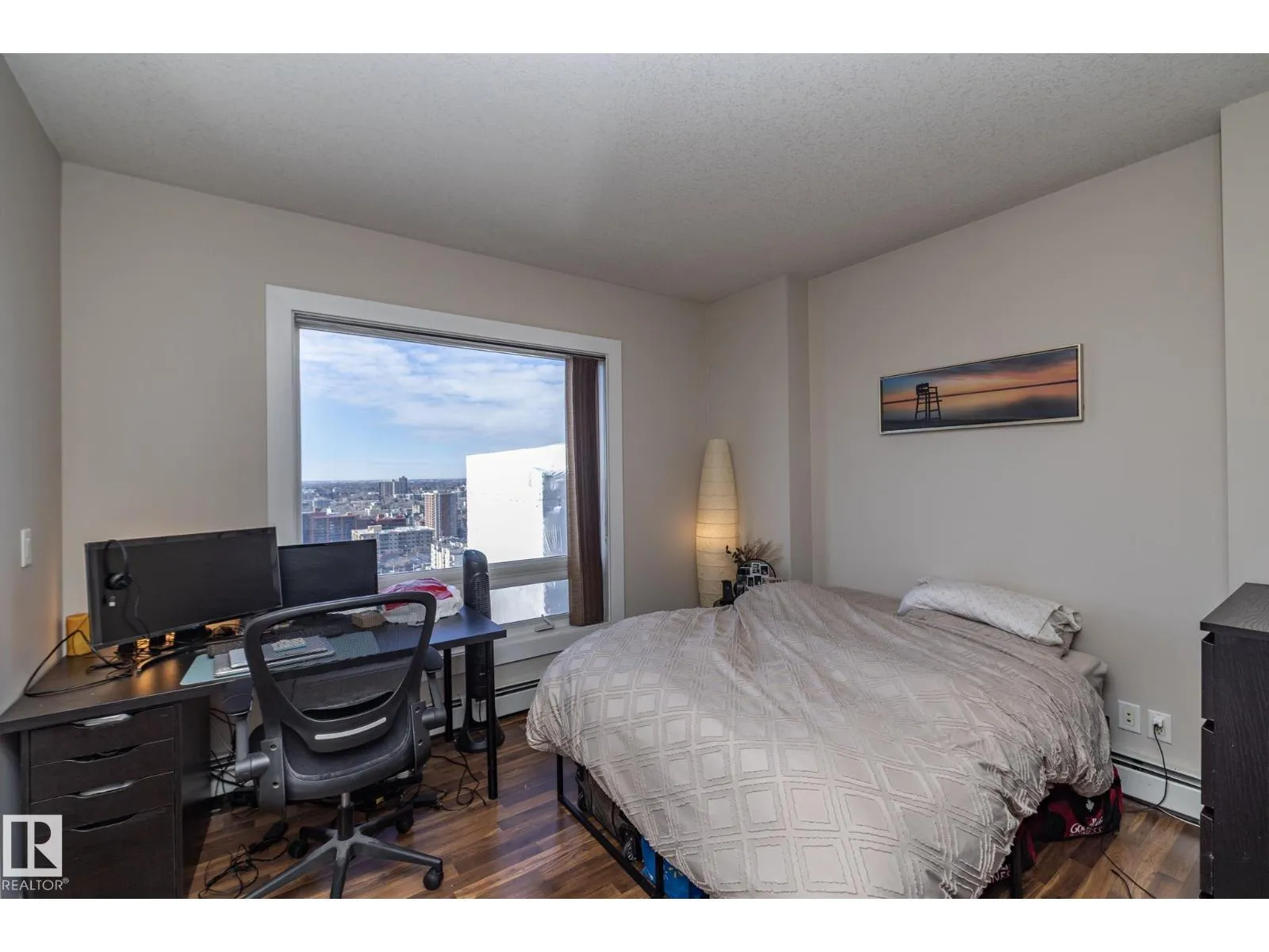 Welcome to ICON 1 in Edmonton’s vibrant ICE District. This well-designed condo offers 2 bedrooms, 2 bathrooms, and 1 titled underground parking stall. The open-concept floor plan is filled with natural light and features durable laminate flooring throughout, white cabinetry, and sleek stainless steel appliances. Enjoy the convenience of in-suite laundry and not one, but two west-facing balconies—perfect for taking