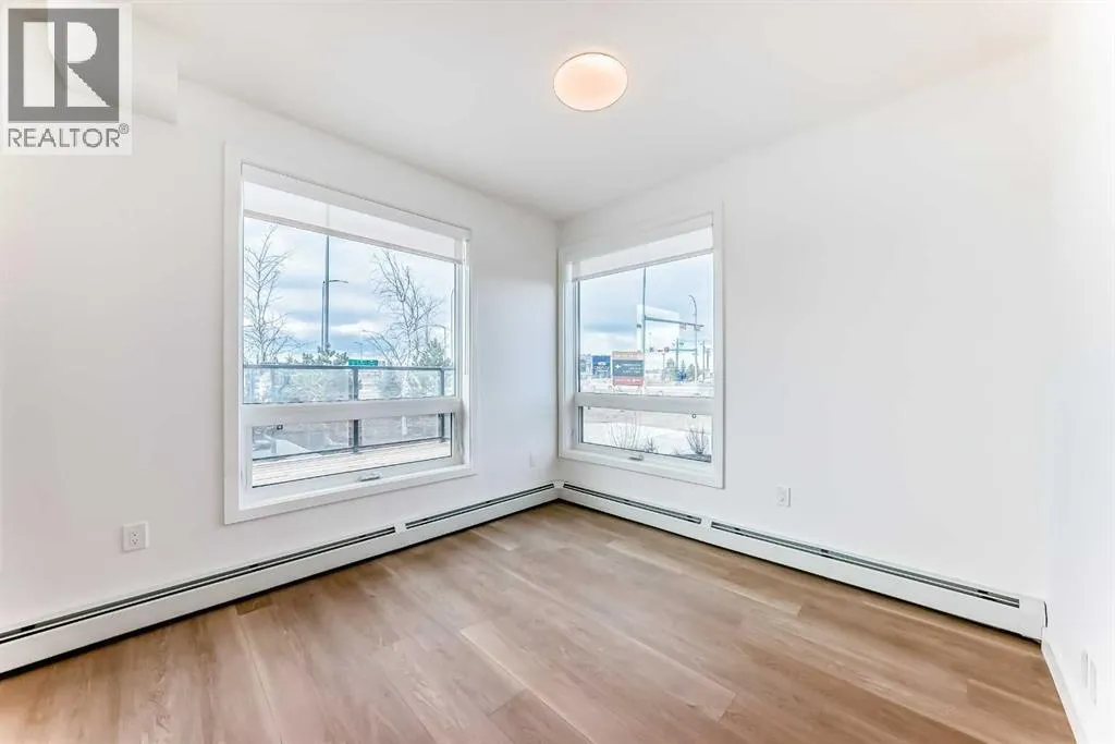 Location, location, location. Ideally situated directly across from East Hills Shopping Centre with Walmart, restaurants, and everyday amenities, and just minutes to Stoney Trail and 16th Avenue. Welcome to this brand-new condo complex in the vibrant and growing community of Belvedere. This corner two-bedroom, two-bathroom condo is a must-see. Vinyl plank flooring flows throughout, the main entry and offers a