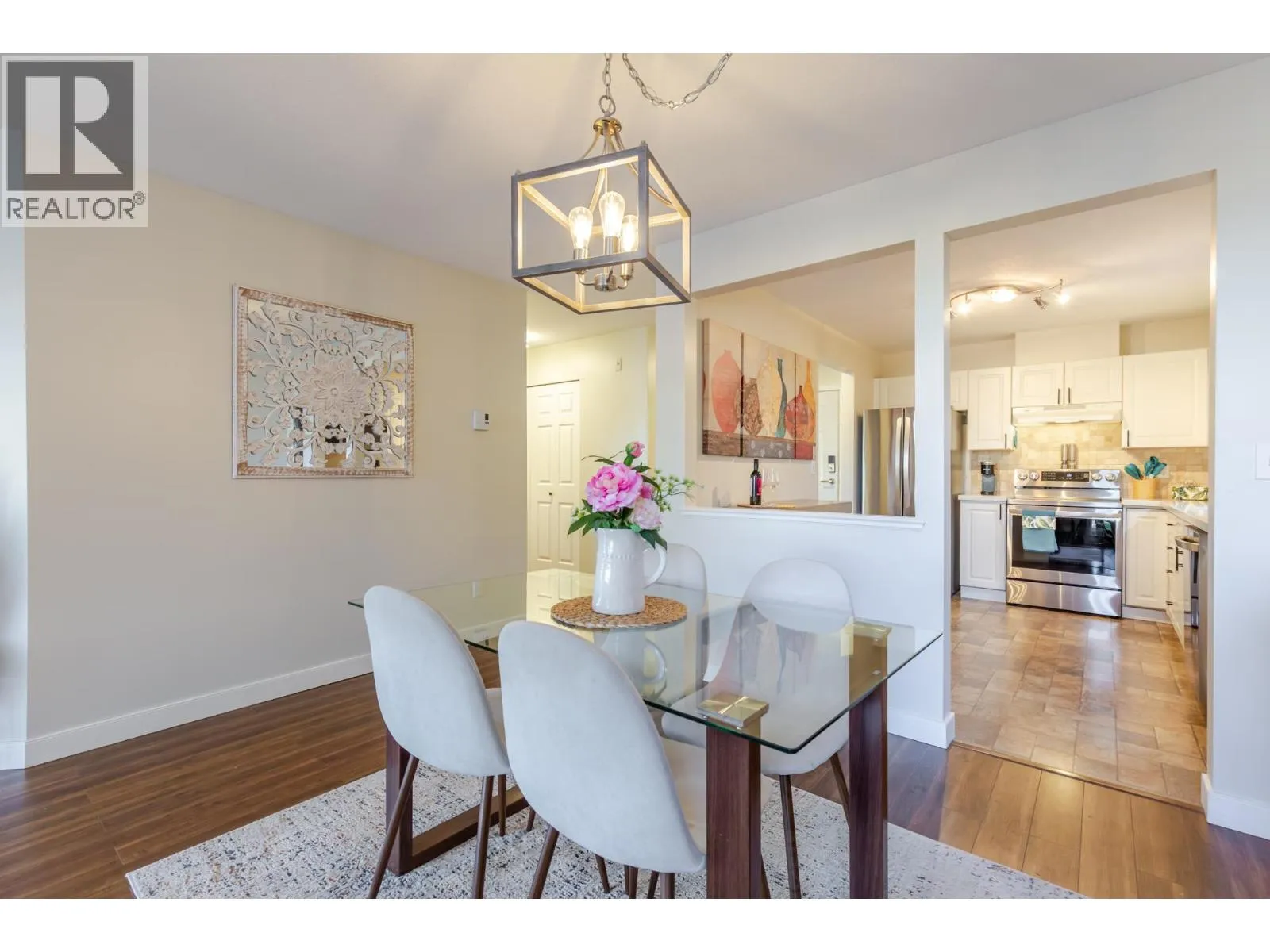 Welcome home to this STUNNING 2-bedroom, 2-bath home offering nearly 1,200 sq. ft. of bright, open living space overlooking a tranquil, park-like setting. Large windows offer tons of NATURAL LIGHT creating an airy, inviting feeling throughout. This move-in-ready unit features updated flooring, modern lighting, and fresh designer paint. The spacious kitchen boasts white shaker cabinets with sheet black hardware, quartz