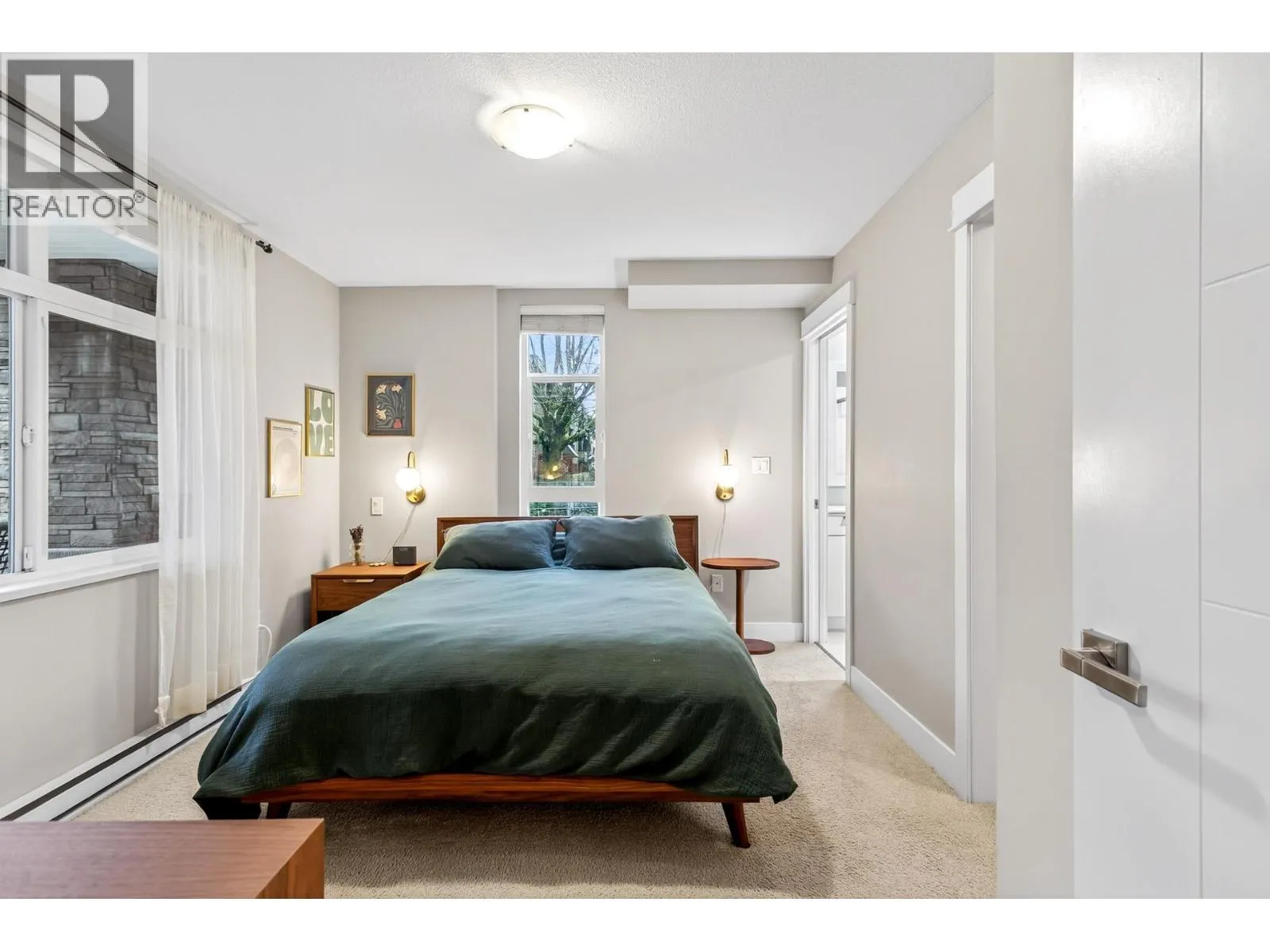Has it all! Offering the feel of a townhouse with private exterior access via its own stairway, this two-bedroom, two-bath corner main-floor residence truly stands out. Abundant natural light pours through an oversized living room window into the open-concept layout, seamlessly connecting the generous living area to the kitchen, complete with quartz countertops and stainless steel appliances. Bonus: concrete walls