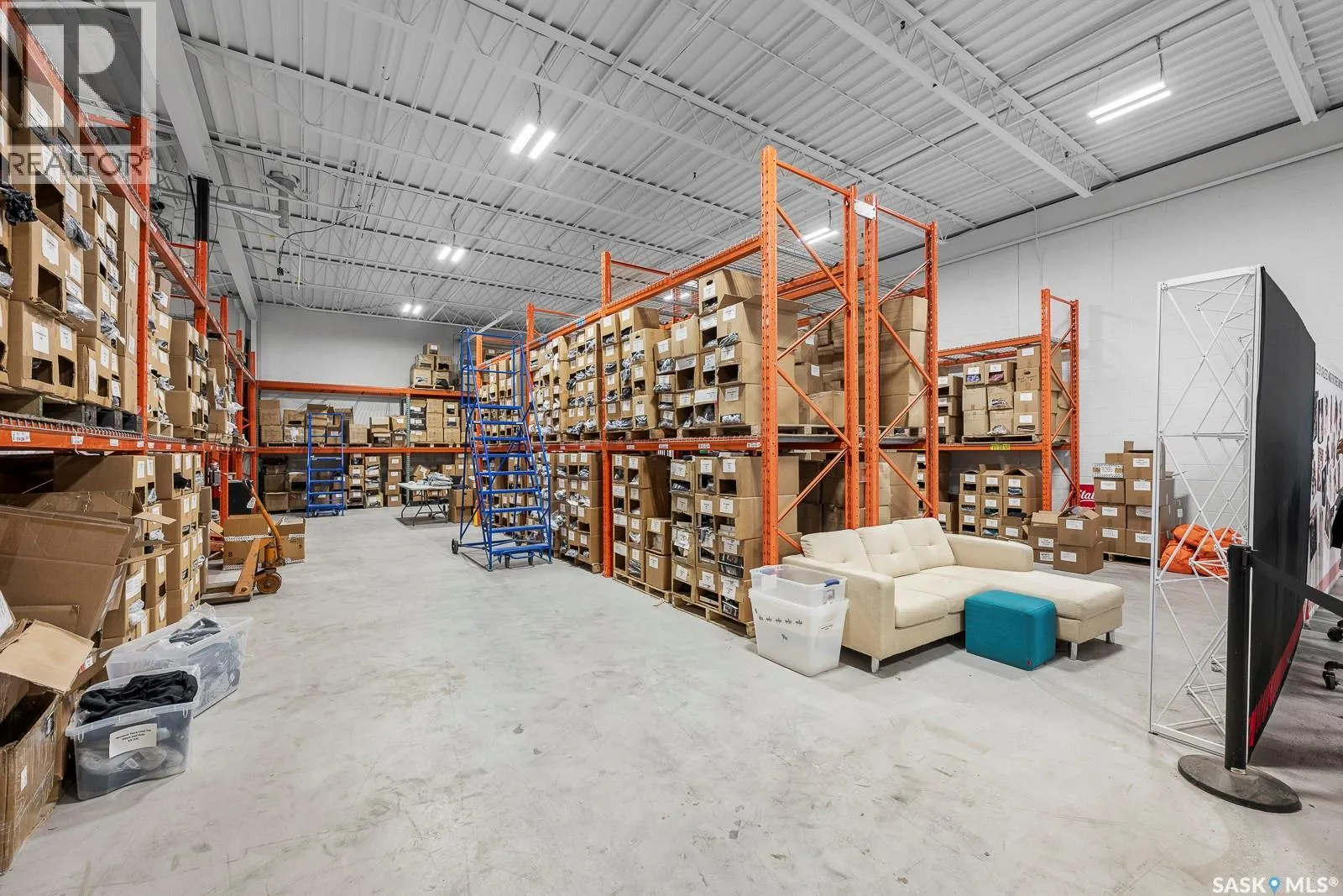 Historic and character-filled building (formerly Signal Industries) offers flexible spaces for lease ranging from 7,920 sqft up to 17,620 sqft. (when combined with two adjacent spaces to each side). This particular space is a wide open warehouse set up, ideal for storage or light industrial warehouse type of use with high ceilings and bright lights throughout. There are 2 bathrooms,