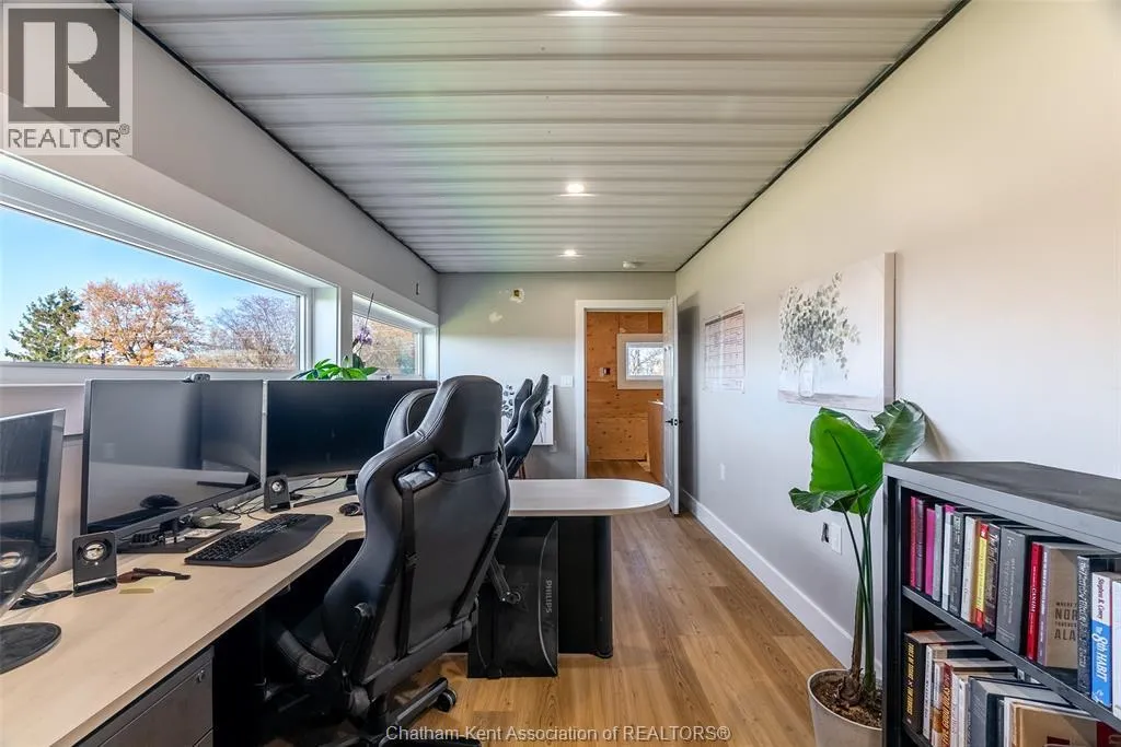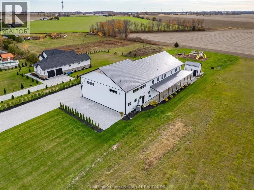 Welcome to this stunning 2-year-young barndominium, perfectly blending modern living and country charm. Sitting on just under an acre in the quaint town of Merlin, this 5-bedroom, 4-bath home offers space, function, and style at every turn. The main floor features soaring vaulted ceilings, an open-concept layout, with loads of natural light and a large kitchen with island, walk-in pantry,