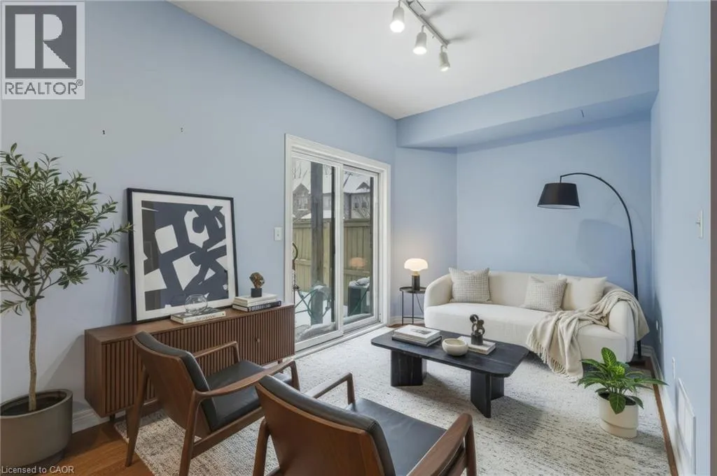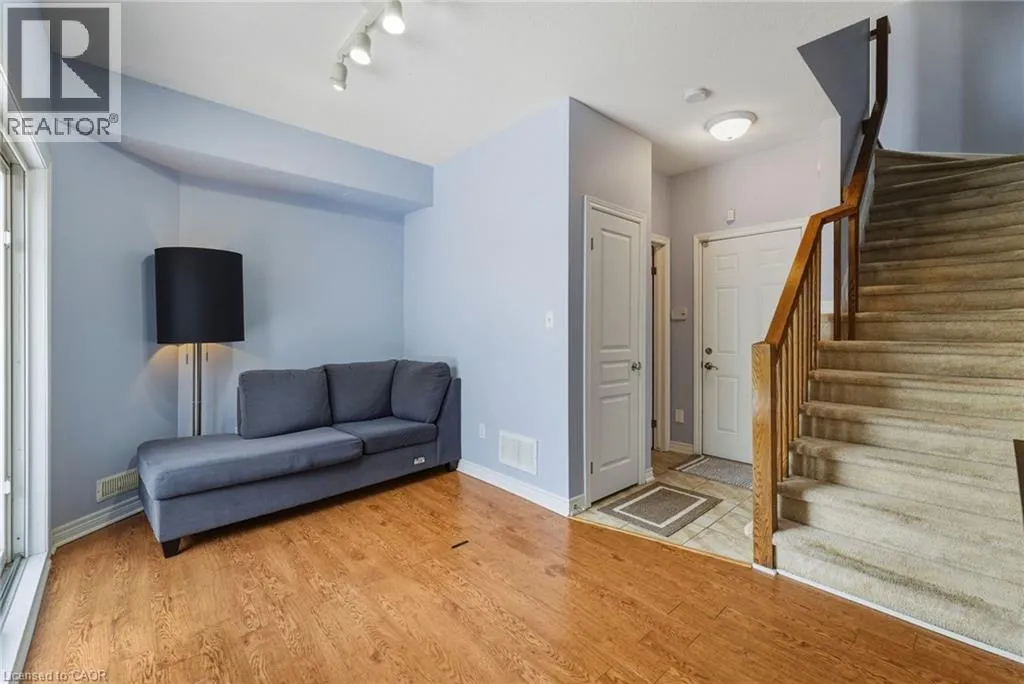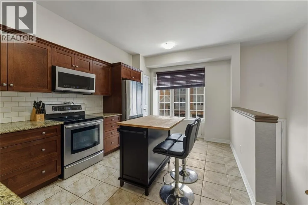 Situated in a quiet Ancaster neighbourhood, this well maintained corner unit townhouse offers bright, comfortable living across three finished levels. The open concept main floor includes a gas fireplace and access to a private balcony. The eat in kitchen is finished with granite countertops, maple cabinetry, stainless steel appliances, a pantry, and breakfast bar. Upstairs are two spacious bedrooms, a