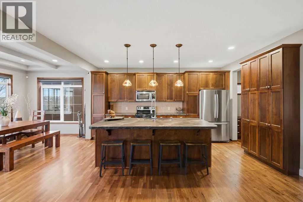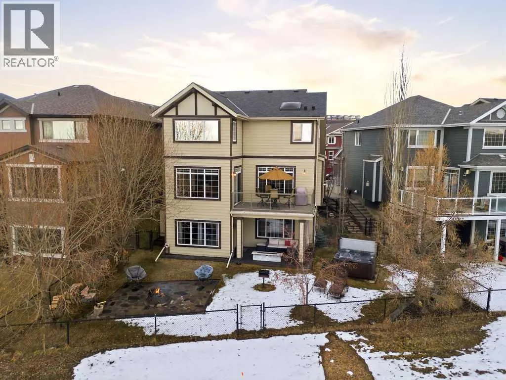 FIREPLACE with CUSTOM MANTEL and UPGRADED VENTING. A large office provides the ideal work-from-home setup, while the chef-inspired kitchen impresses with STAINLESS STEEL APPLIANCES, custom CONCRETE COUNTERTOPS, upgraded faucet, DARK CABINETRY offering exceptional STORAGE, and a convenient pass-through pantry. Just off the kitchen, you’ll find MAIN FLOOR LAUNDRY and a large mudroom, designed for real life and busy households. Upstairs, the PRIMARY RETREAT is a true standout, offering OVER 325 SQFT of space—your own private oasis. The luxurious 5-piece ensuite features an OVERSIZED SHOWER, corner SOAKER TUB, upgraded CONCRETE COUNTERTOPS (carried throughout ALL BATHROOMS) with dual sinks, UPGRADED FAUCETS, a SKYLIGHT that floods the space with NATURAL LIGHT, and a WALK- IN CLOSET. A bright BONUS ROOM with VAULTED CEILINGS and oversized windows creates an inviting secondary living area, while two additional spacious bedrooms and a full 4-piece bathroom complete the upper level.The walkout basement boasts HIGH CELINGS and an EXPANSIVE RECREATION ROOM with ample space for movie nights, a pool table, or hosting game nights. The FOURTH BEDROOM easily accommodates a queen-sized bed and workspace, includes a walk-in closet, and connects to a full Jack and Jill style BATHROOM—ideal for guests or older children. Outdoor living truly shines here. The walkout level opens onto a REFINISHED LOWER DECK featuring a GAS FIREPIT and HOT TUB, 2 CUSTOM STONE PADS, one around the WOOD BURNING FIREPIT (with dedicated firewood storage) and the other next to the SHED. The upper deck has been upgraded with MODERN GLASS RAILINGS, and the PROFESSIONALLY LANDSCAPED backyard is FULLY IRRIGATED with an automated, app-based irrigation system, making maintenance effortless.This home has been meticulously UPGRAGED with long-term durability and comfort in mind, including NEW HAIL RESISTANT ROOF, SIDING and garage glass, central AIR CONDITIONING, upgraded black front rain gutters, ACID- STAINED DRIVEWAY, and a CUSTOM-BUILT SHED finished in matching exterior colours with CUSTOM STONEWORK. Inside, enjoy peace of mind with smoke and CO detectors in every room, CUSTOM BLINDS on two levels, NEW HOT WATER TANK (boiler), and DOORBELL CAMERAS at both the front and basement entrances. An upgradable TELUS ALAM SYSTEM (no contract) completes the package. This home is where quality craftsmanship, thoughtful upgrades, and exceptional indoor-outdoor living come together—a truly move-in-ready property in a family-friendly community close to parks, pathways, and everyday amenities. (id:62650)