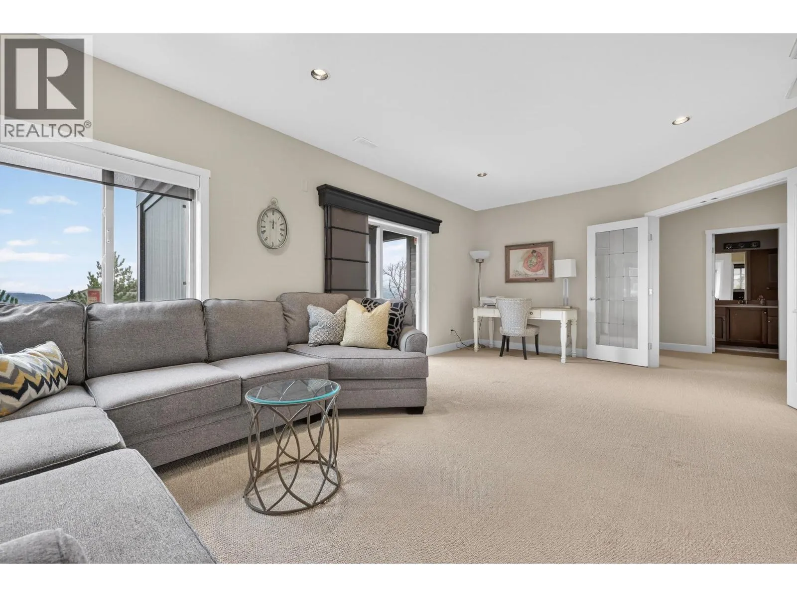 Welcome to your dream home in the gated community of Sunset Ranch. This stunning three bedroom plus den, three bathroom residence offers nearly 2,400 square feet of thoughtfully designed living space with sweeping views of Okanagan Lake, the valley, mountains, and the golf course—perfectly framed by unforgettable sunsets. The open-concept layout is ideal for everyday living and entertaining, featuring a