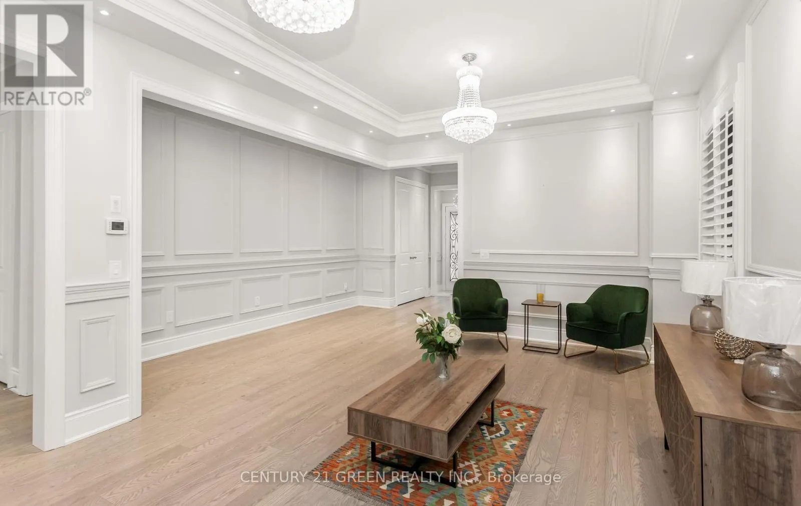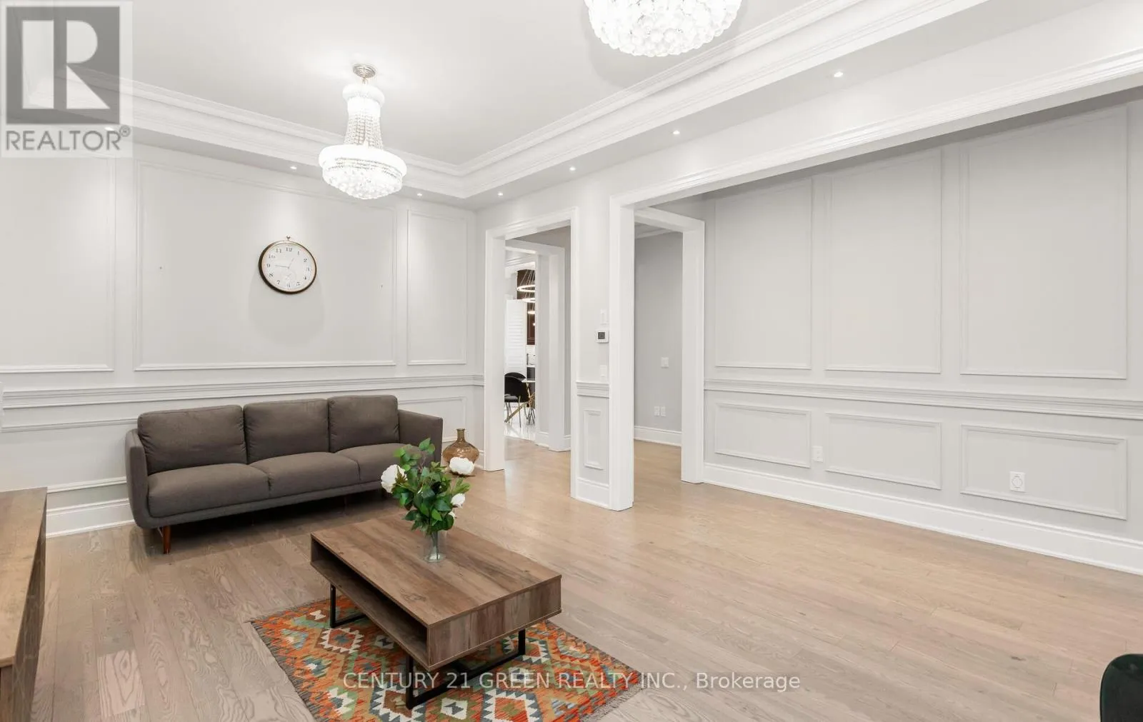Exquisite gem in the highly sought-after Ford community. Offering approx. 5,000 sq. ft. of living space with 5+3 bedrooms and 5+1 baths. Elegant main level features wide-plank hardwood floors, wainscoting, 10′ ceilings with crown Moulding and custom LED chandeliers with pot lights throughout. Eat-in gourmet kitchen with premium KitchenAid appliances, quartz countertops, oversized centre island, and extended cabinetry. Second level