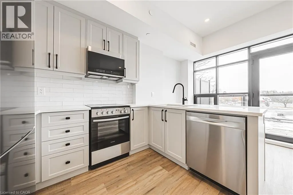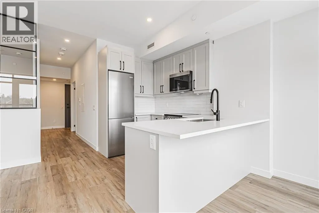 Located on the top level, this 1 Bedroom, 1 Bathroom suite features tall ceilings, modern finishes, and a thoughtfully designed open-concept layout ideal for everyday living. The kitchen is equipped with full-size stainless steel appliances and quartz countertops, while the spacious bedroom offers flexibility for both relaxation and a work-from-home setup. A private balcony extends the living space outdoors, providing