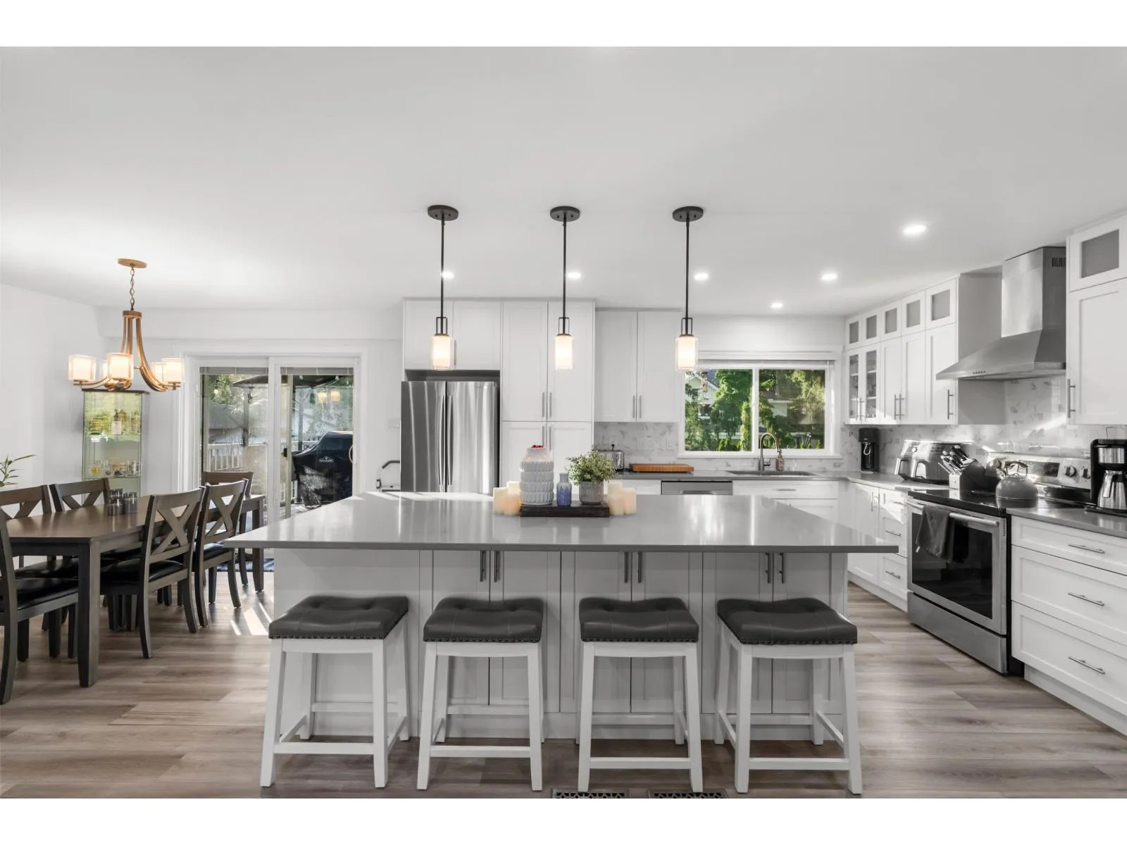 Classic Brookswood family home in a conveniently located, well established neighbourhood. This professionally updated home features a beautiful kitchen with an extra large island and built in beverage fridge, ideal for everyday living and entertaining. Step out from the kitchen to the large south facing deck, and lower patio area, perfect for summer gatherings and evening barbecues. The main floor