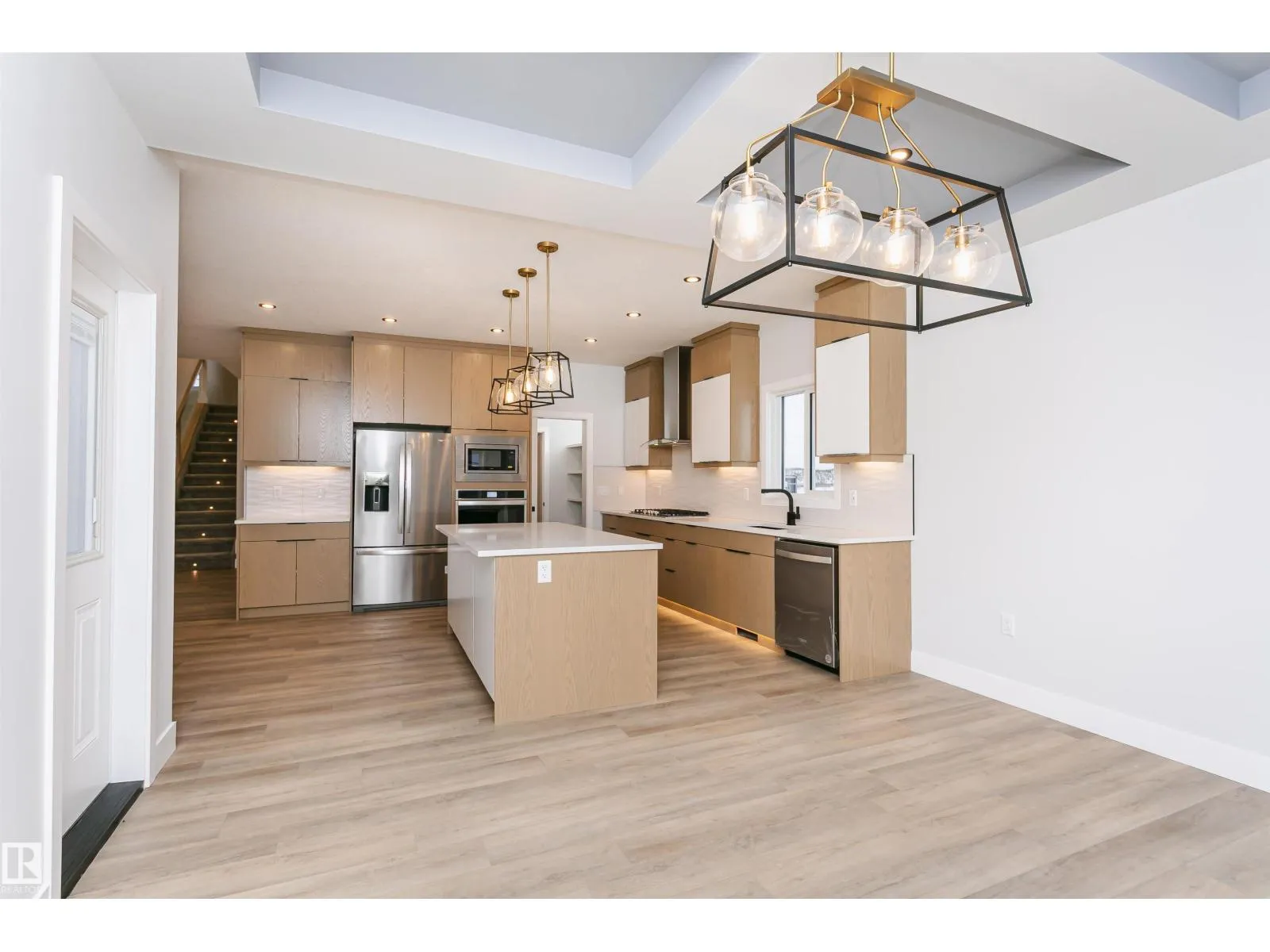 Set in Southfork, Leduc’s most sought-after master-planned community, this exceptional walkout estate backing onto a tranquil pond delivers approx. 2,800 sq. ft. of thoughtfully designed luxury living. Grand 18’ ceilings and an architectural maple staircase with glass inserts and LED step lighting create a striking first impression. The home showcases designer gas and electric fireplaces, coffered ceilings with statement lighting,