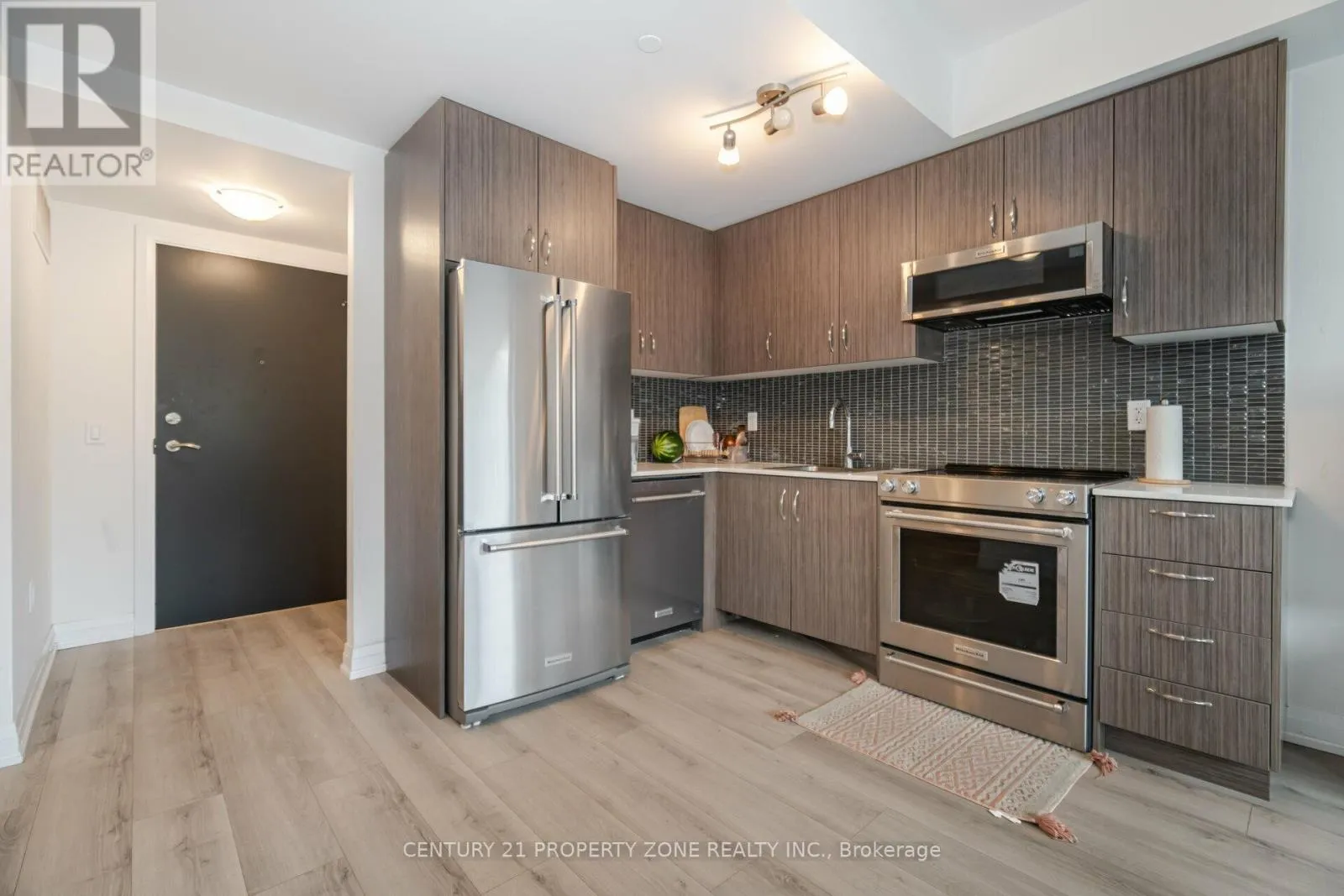 This beautiful BRAND NEW stacked condo townhouse is now available for lease and features 1 Bedroom + 1 Bathroom, 1 Owned Parking Space, and 1 Owned Locker. Includes numerous builder upgrades throughout. Carpet-free layout, oversized balcony with glass railings, and upgraded KITCHENAID appliances in the entire kitchen. Quartz countertops, premium cabinetry with full-depth fridge upper cabinet, upgraded backsplash, and approximately